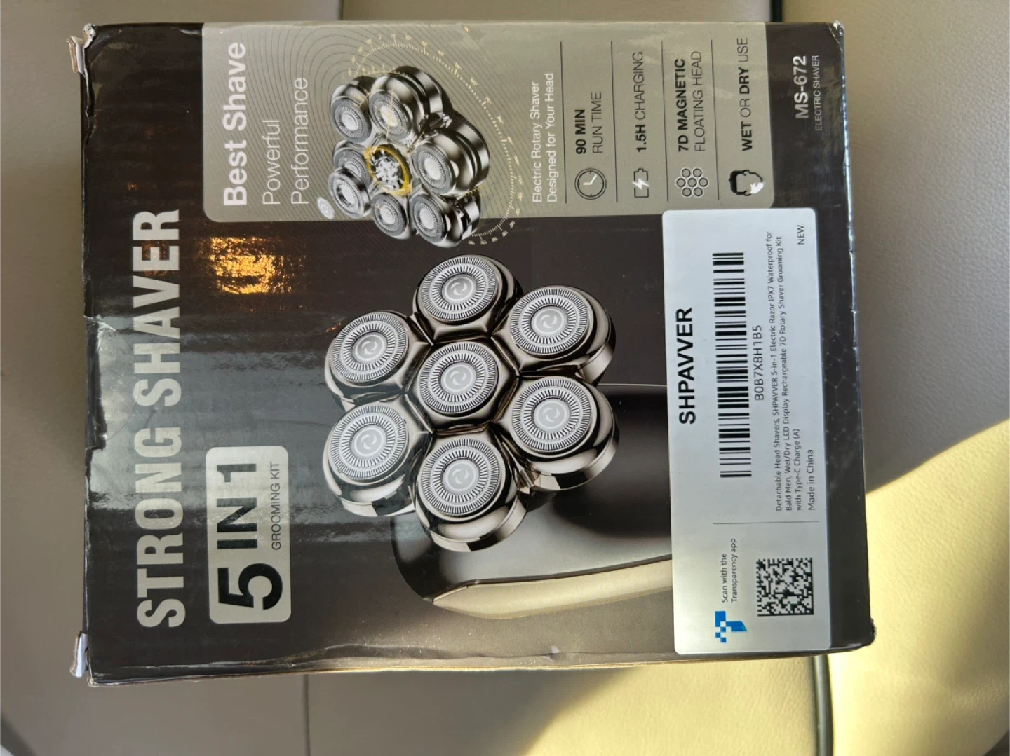 15Selling a brand new SHPAVVER Head Shaver for Bald Men, still in its original box! This is a 5-in-1 grooming kit with a detachable electric bald razor. It's IPX7 waterproof, suitable for wet or dry use, and features a 7D rotary shaver with an LED display and Type-C charging. Originally priced at $56.99!