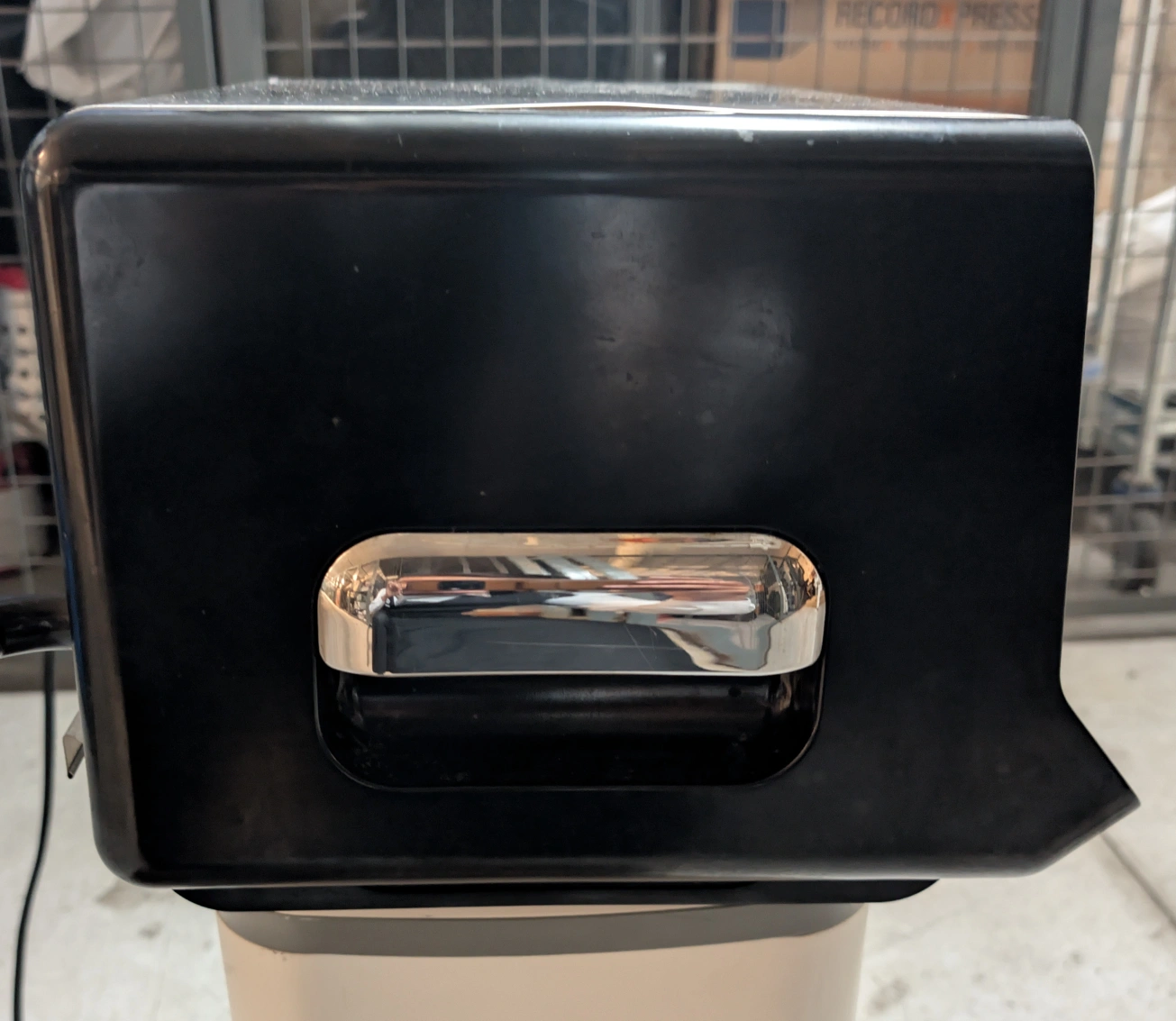 Brushed stainless steel and black housing