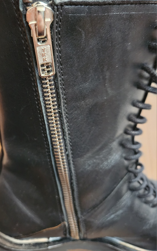 Selling a pair of AllSaints Mina boots in black leather. These are a US size 7 / EU 37. The model number is WF585X. Made in Portugal. Originally bought for $449.00. Worn once. Left zipper professionally replaced as shown.