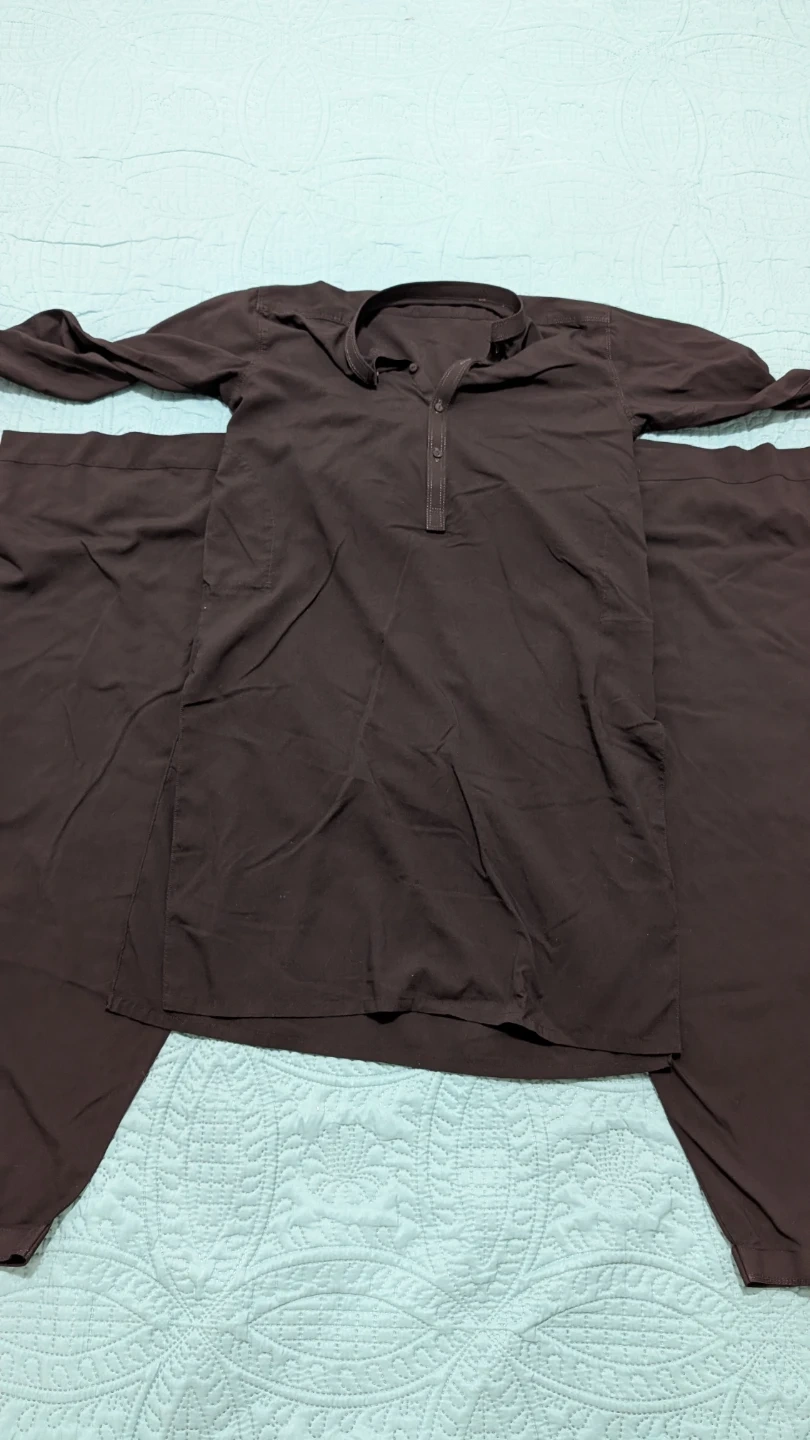Selling a black kurta pajama set. The kurta measures approximately 37 inches in length, and the pants measure about 39 inches in length. Great for casual wear or special occasions! Used 3 times.
