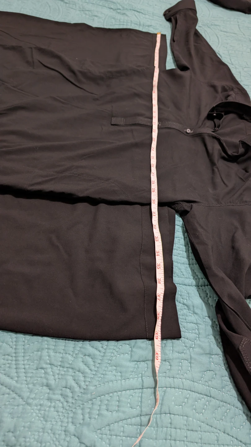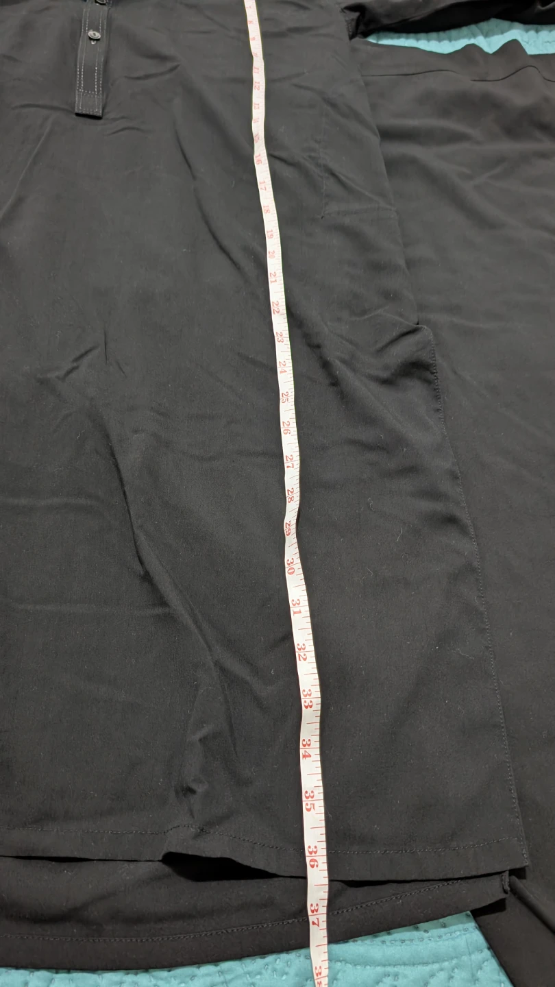 Selling a black kurta pajama set. The kurta measures approximately 37 inches in length, and the pants measure about 39 inches in length. Great for casual wear or special occasions! Used 3 times.