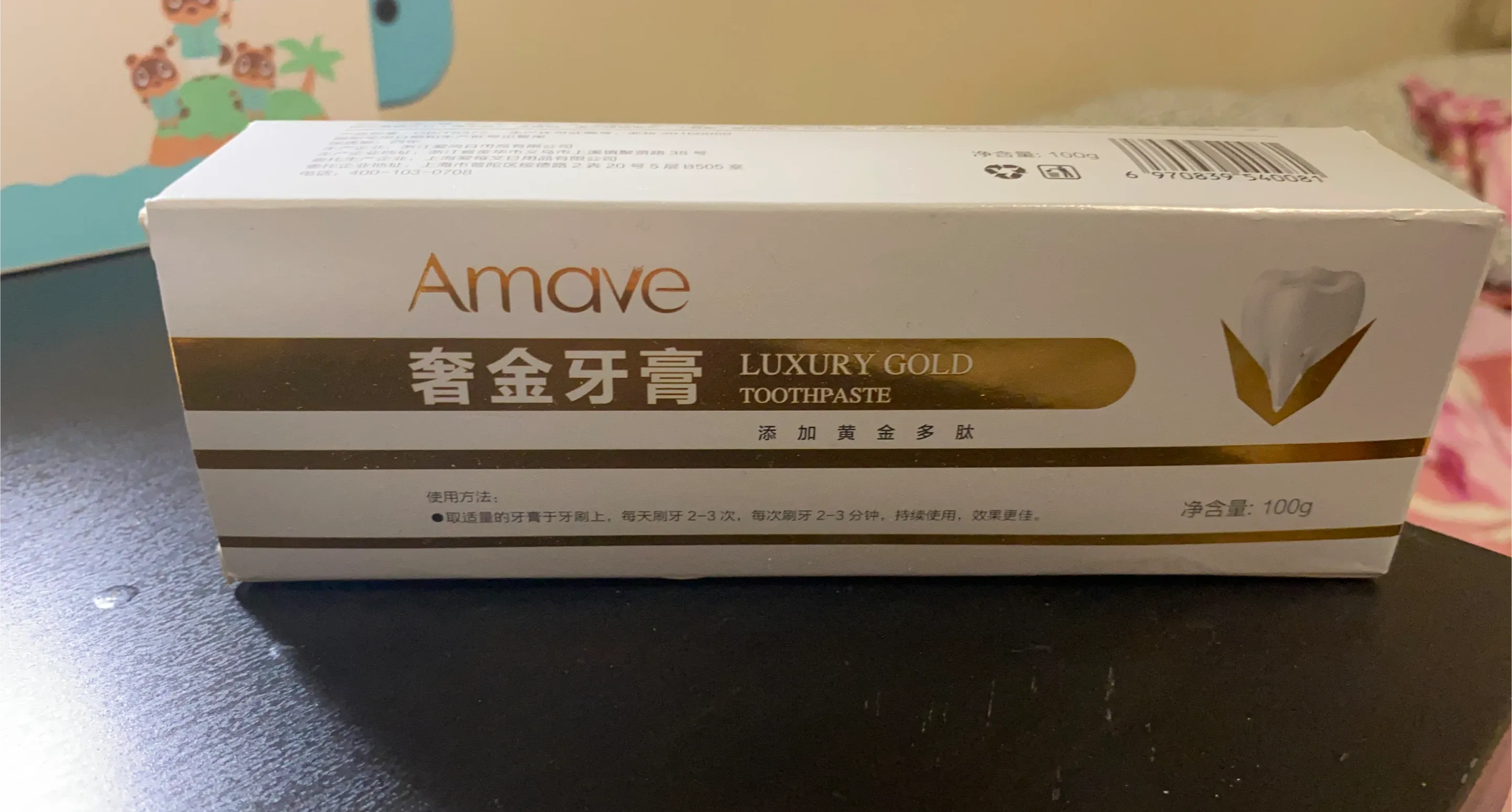 Amave Luxury Gold Toothpaste comes in a 100g size, human use. It's formulated with gold peptides. Use twice daily for best results. My boyfriend purchased it in a value pack from China, now I would like to trade it for dog food or dog pee pads.