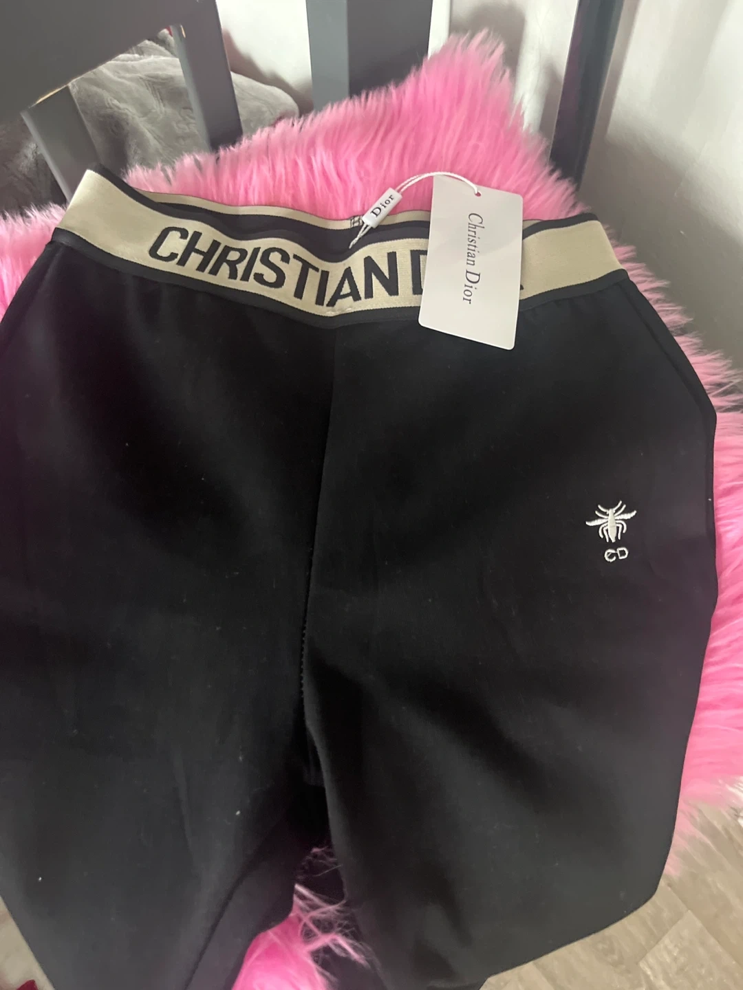 Christian Dior sweatpants in black. Size S. Features the "CD" logo and signature band. Made in France.