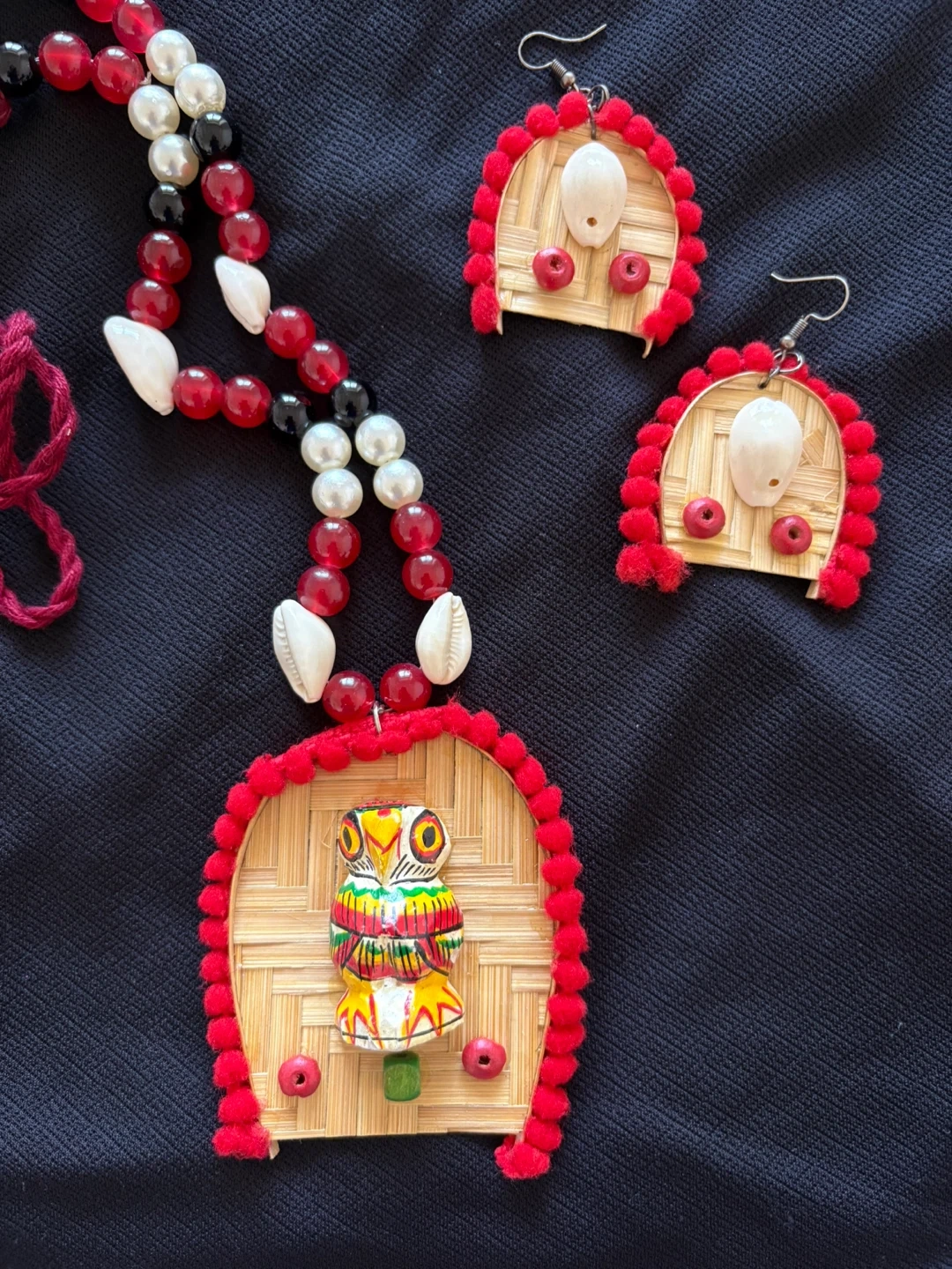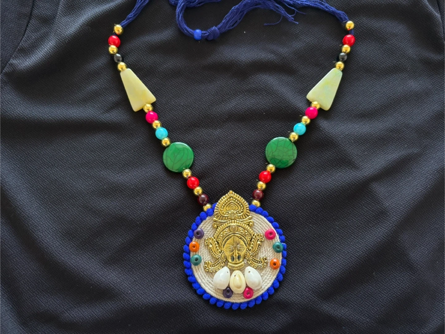 There is a handmade neckpiece and a neckpiece