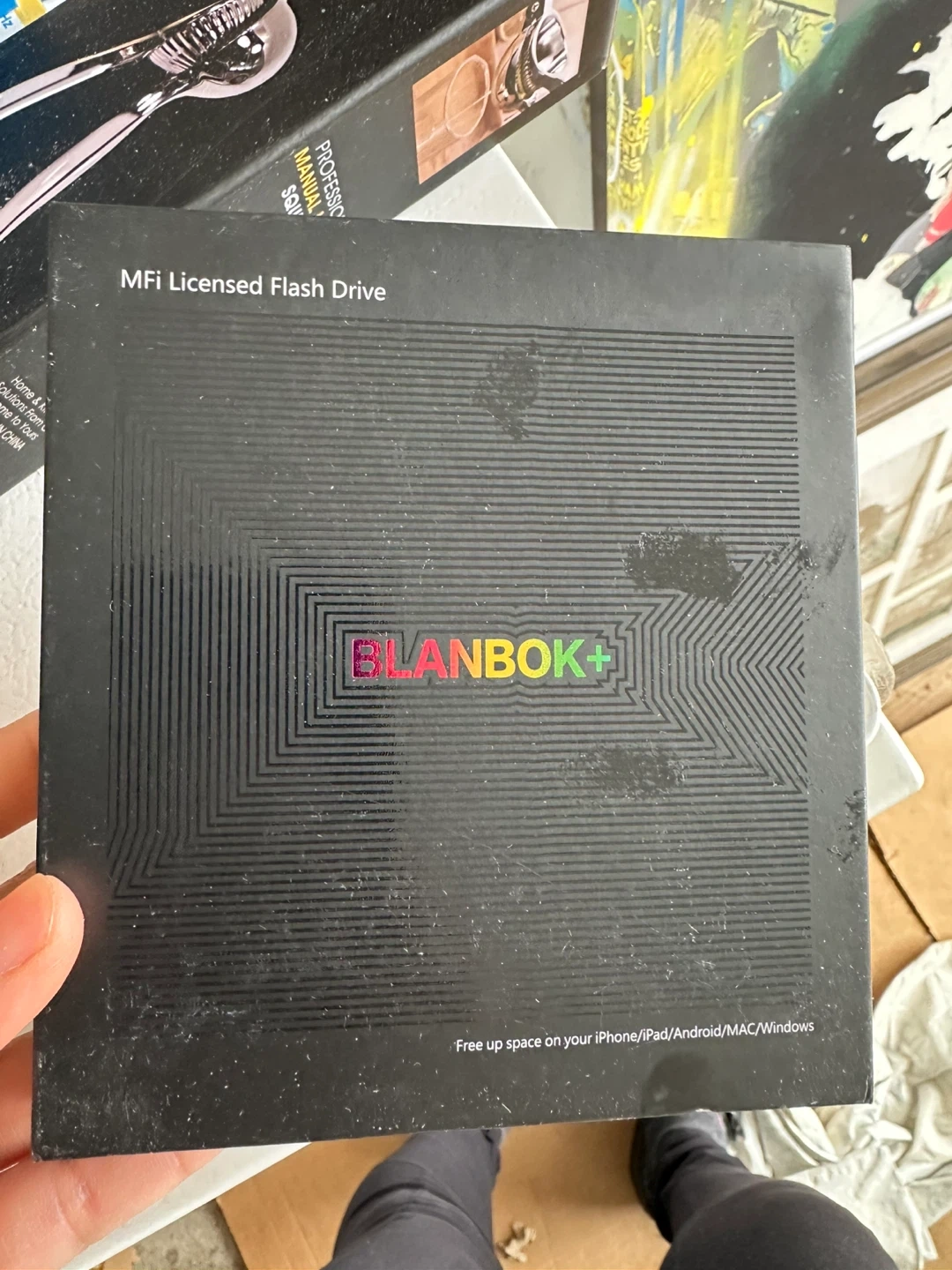 This BLANKBOX+ flash drive is MFi licensed and connects to Apple products. It supports USB + Lightning interface type with Type-C adapter. Available storage is 128GB/256GB/512GB, with exFAT/FAT32/NTFS formats supported. Transfer speed may depend on hardware and software used. It's compatible with iOS 7.1.2 or above, OTG Android, Windows 7 or above, and MAC OS 10.6 or above. Offers free up space on your iPhone, iPad, Android, MAC, and Windows devices!
