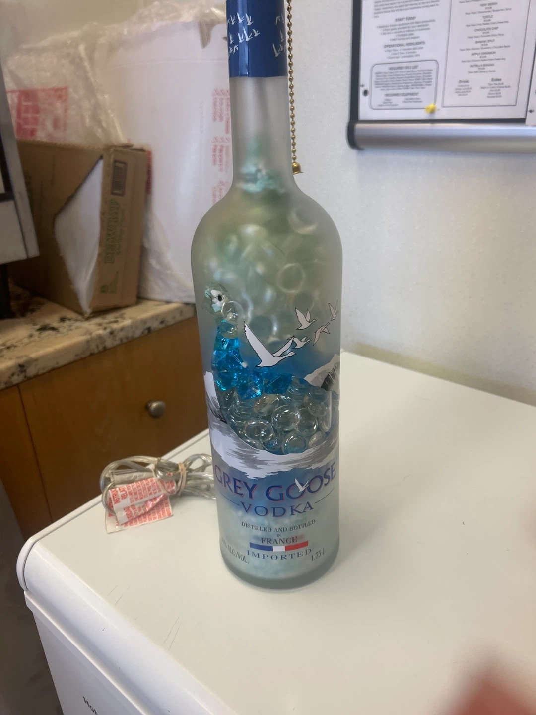 Grey Goose Vodka Bottle Lamp with Decorative Fill