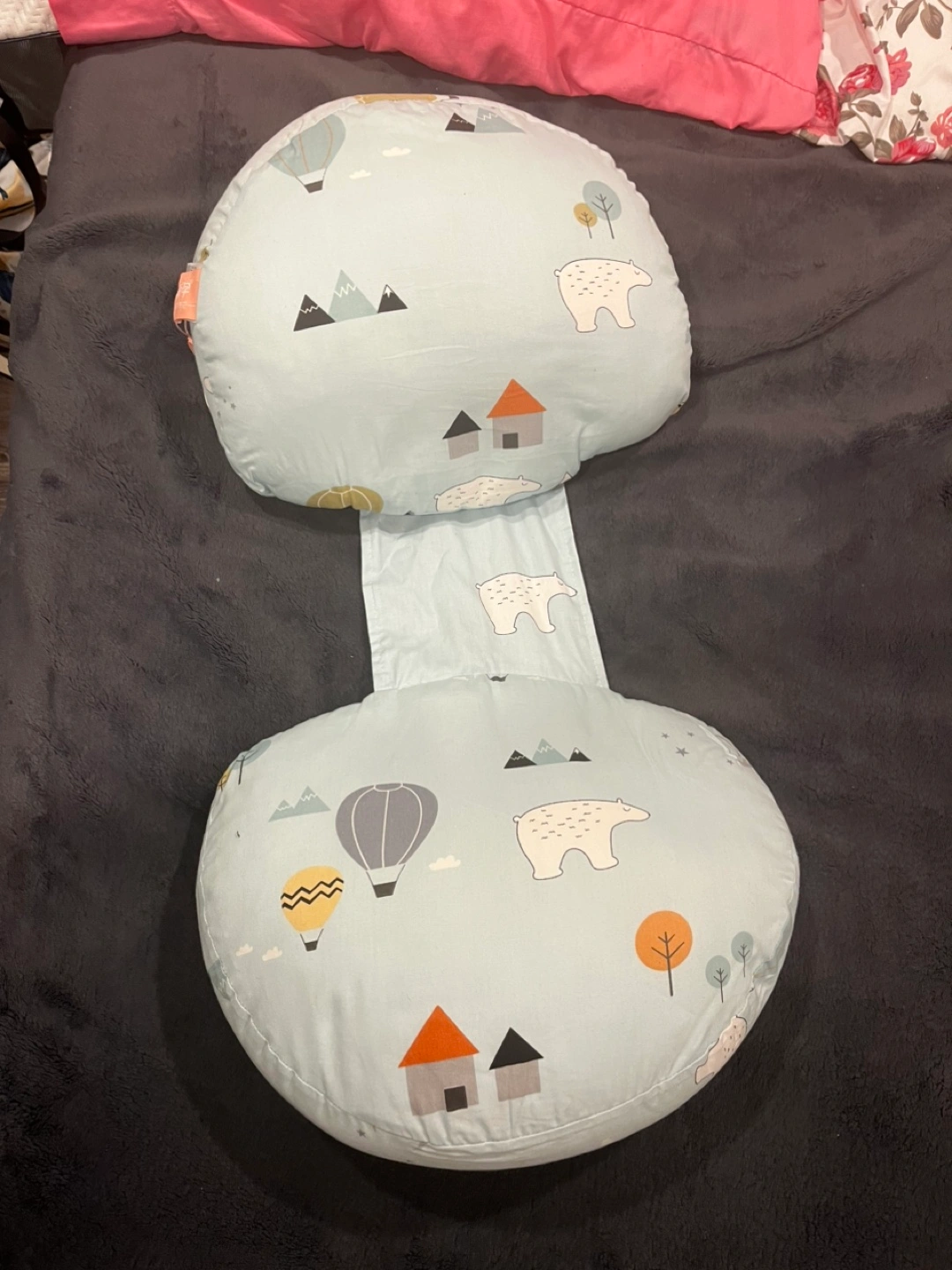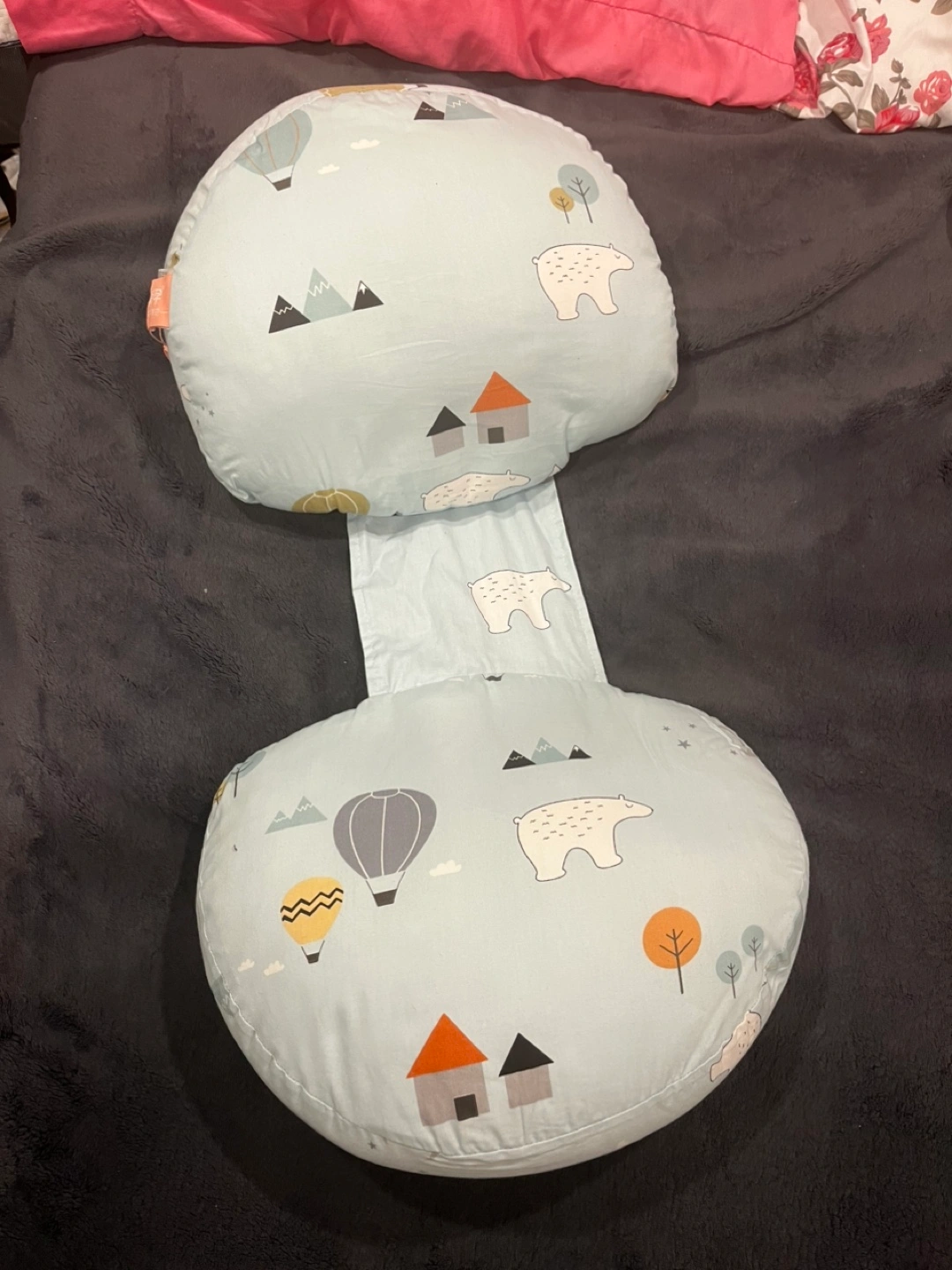 MOVING OUT SALE!!!!! Sleep better during pregnancy with this compact side-sleeping support pillow, designed especially for expectant moms who need comfort without the bulk of a full body pillow. With two plush cushions connected by a soft, breathable panel, this pillow gently cradles your bump and back to promote proper alignment and reduce pressure while you rest on your side. • Ideal for side sleeping during pregnancy • Lightweight, space-saving design – perfect for smaller beds • Soft, cozy fabric with adorable bear and balloon print • Helps relieve hip, back, and belly discomfort • Great for travel or everyday use Stay supported, sleep comfortably, and wake up refreshed – your body (and baby) will thank you! Pick up only