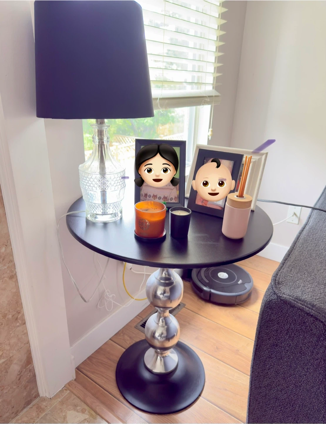 Selling a side table with a black top and a chrome base. It's in great shape and would look great in any room!