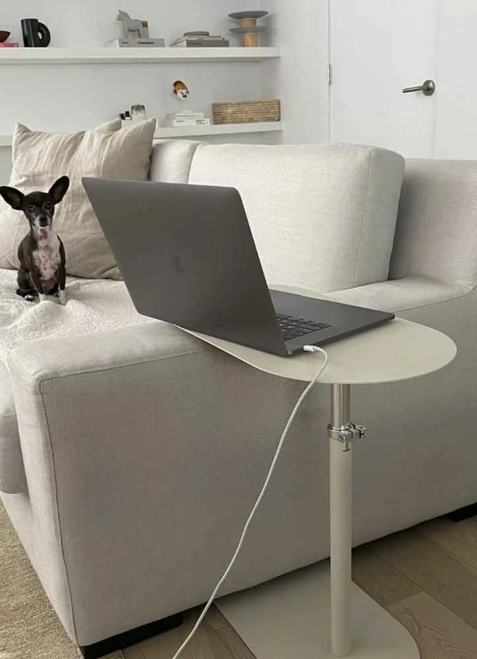 10Lightweight and adjustable, the Finn table works how you work. Designed to nest on top of a sofa or bed, the Finn is sized to accommodate a laptop or tablet, making use of the space you have. The quick-release tube lock function allows the table to be adjusted between 17” and 29” while the base sits on felt pads to protect hardwood floors from scratches. 11.7 ″w × 23.5″d × 18″h