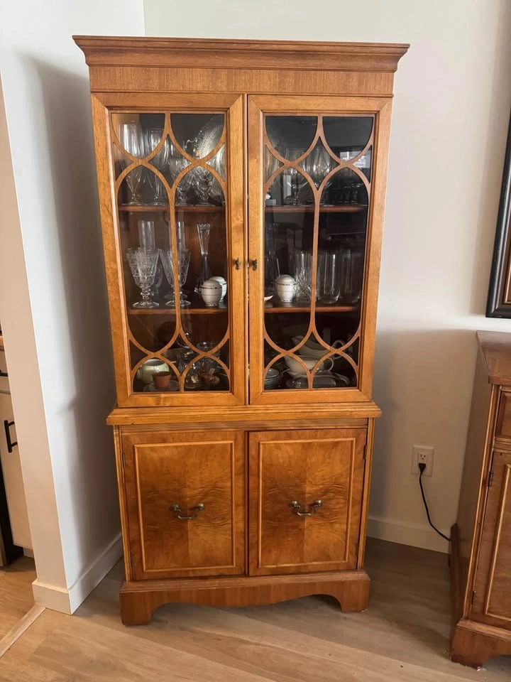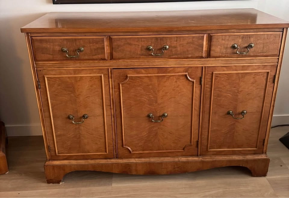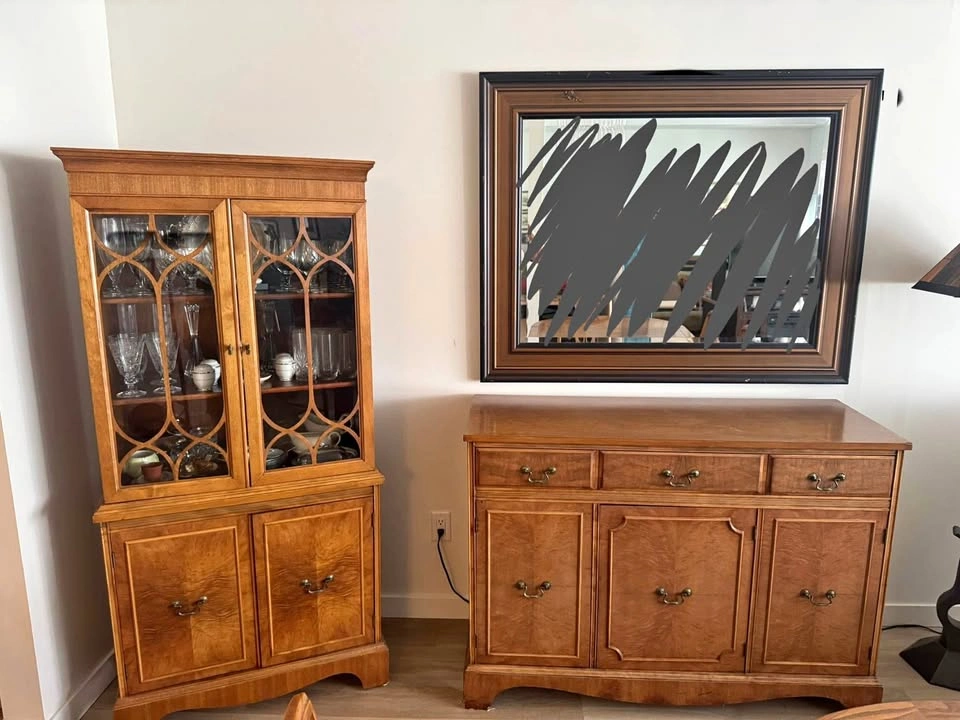 Downsizing and sadly have to part with this solid wood family heirloom from 1940’s No damage, in perfect condition Side board would make a great TV/media stand and if you take the doors off the china cabinet can turn it into a bar or coffee station China cabinet 66”h x31”w x15”d Buffet. 50”w x 19”d x 35.5 “h Cash only, White Rock pick up.