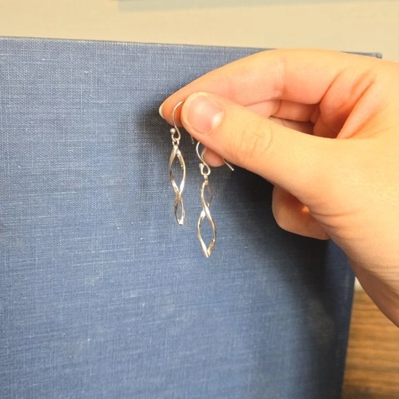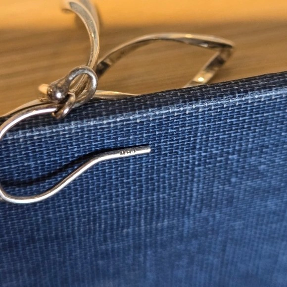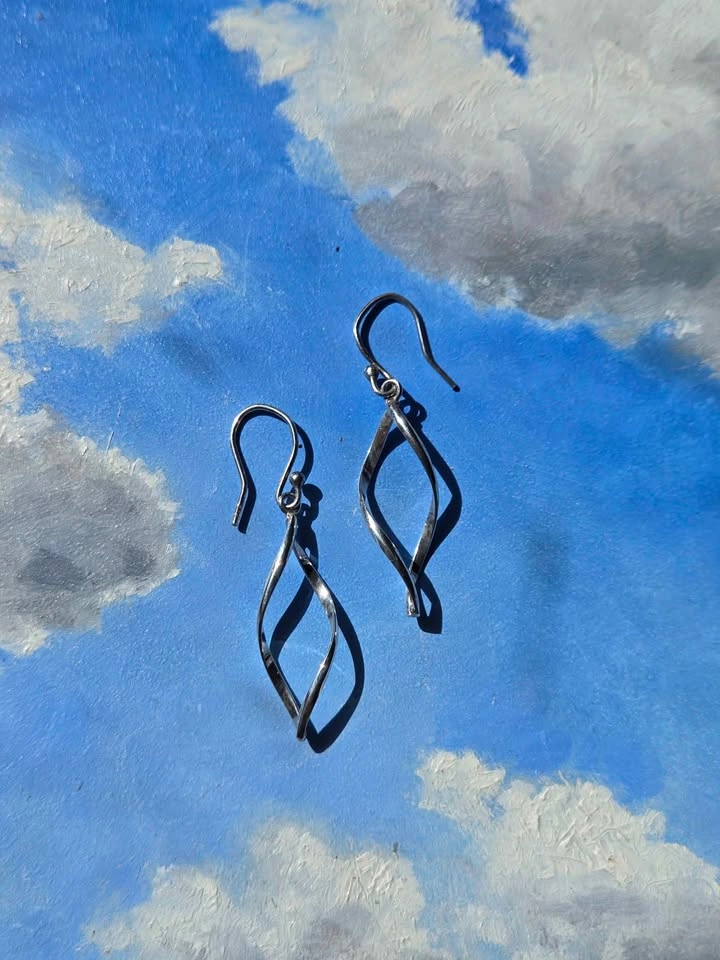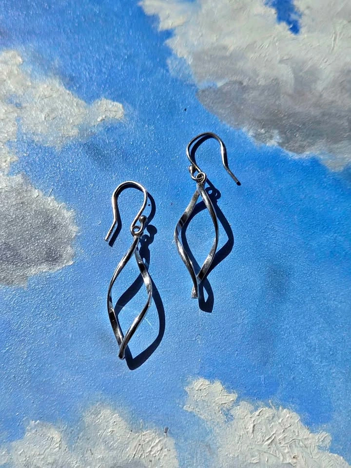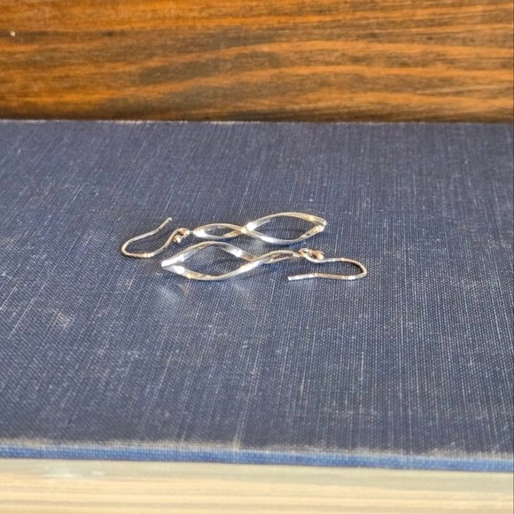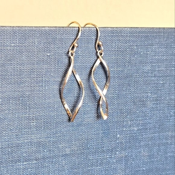 10Pair of elegant sterling silver silver twist dangle earrings. Beautiful, classic and timeless design. Excellent preloved condition! The twists are app 1" long. They're stamped 925 on the wires, as well as MHJ for Michael Hill Jewelers.