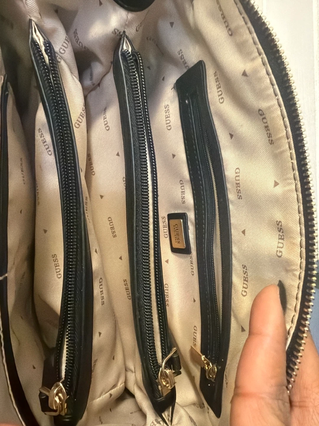 Selling a Guess black quilted satchel bag. It's in great shape and has a stylish quilted pattern! The interior has multiple zipper pockets to keep everything organized.