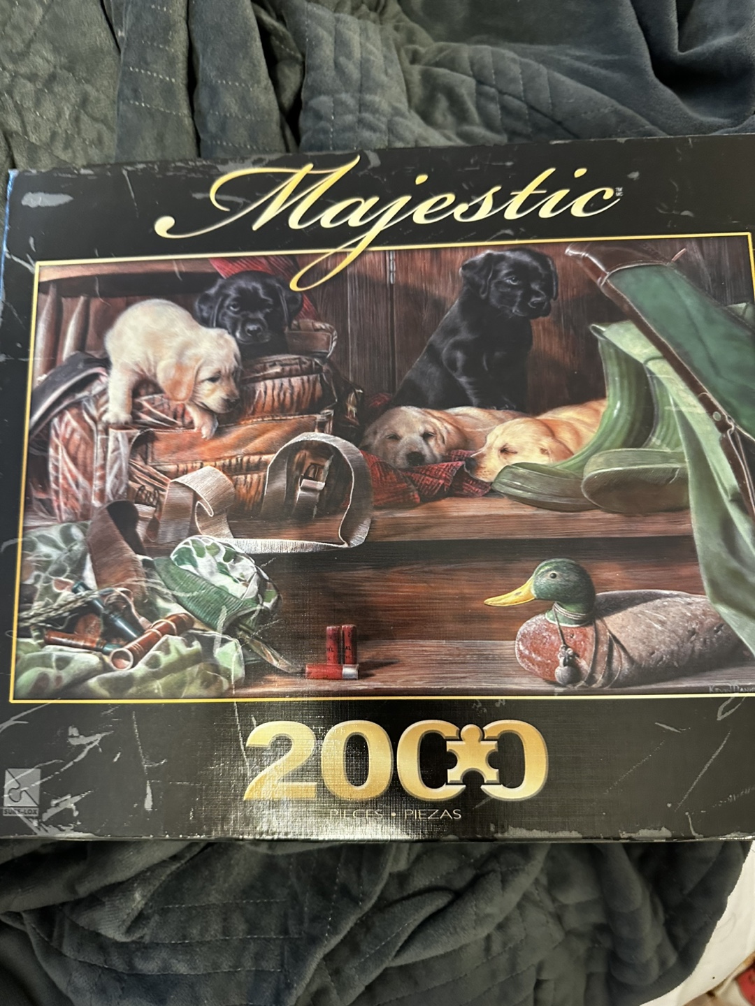 Selling a Majestic 'Dog Tired' puzzle! It's a 2000-piece puzzle that measures over 3 feet when completed. The finished puzzle size is 99.06 cm x 68.58 cm (39 in x 27 in).