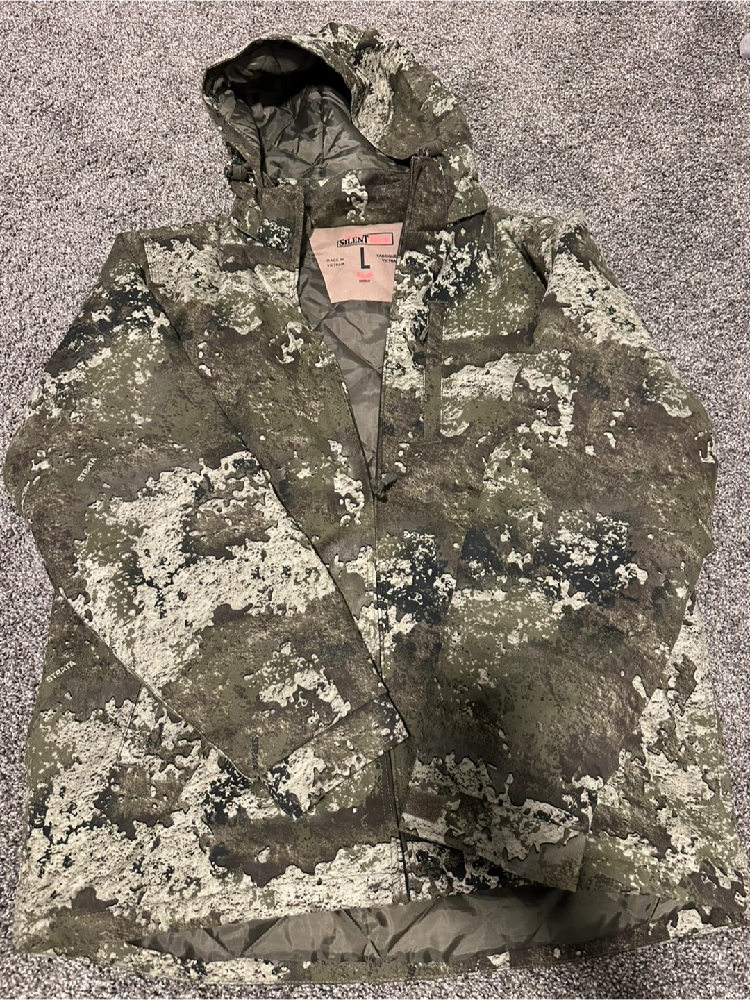 10Selling a Silent Predator insulated hunting jacket in size large. It features a camouflage pattern and is perfect for staying warm during hunting season. It's in great condition!