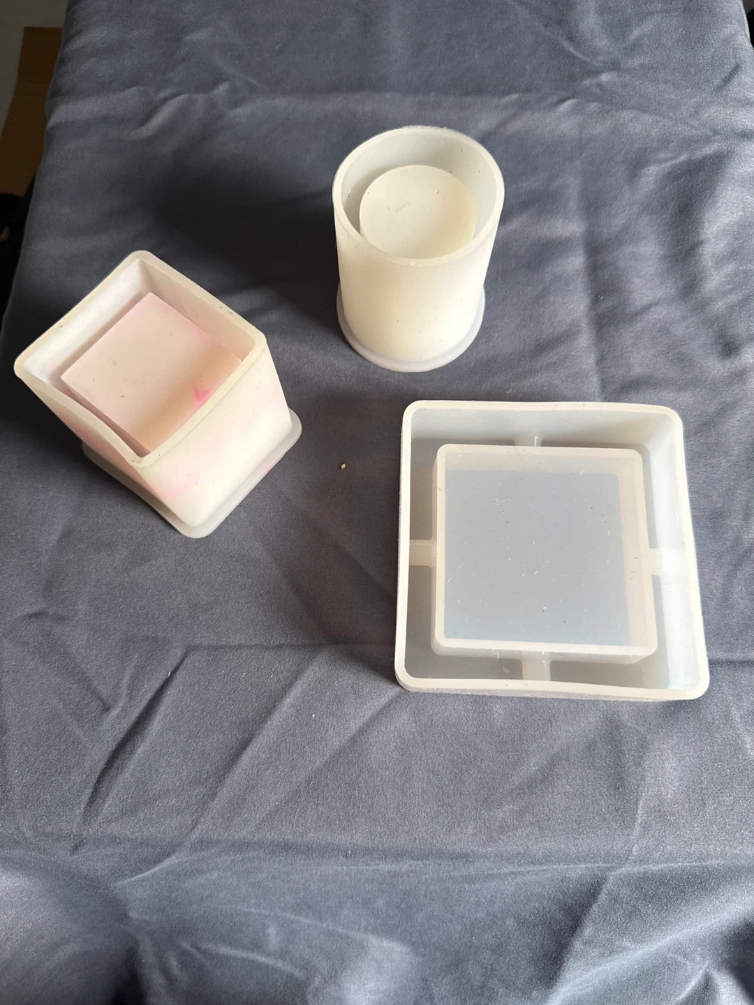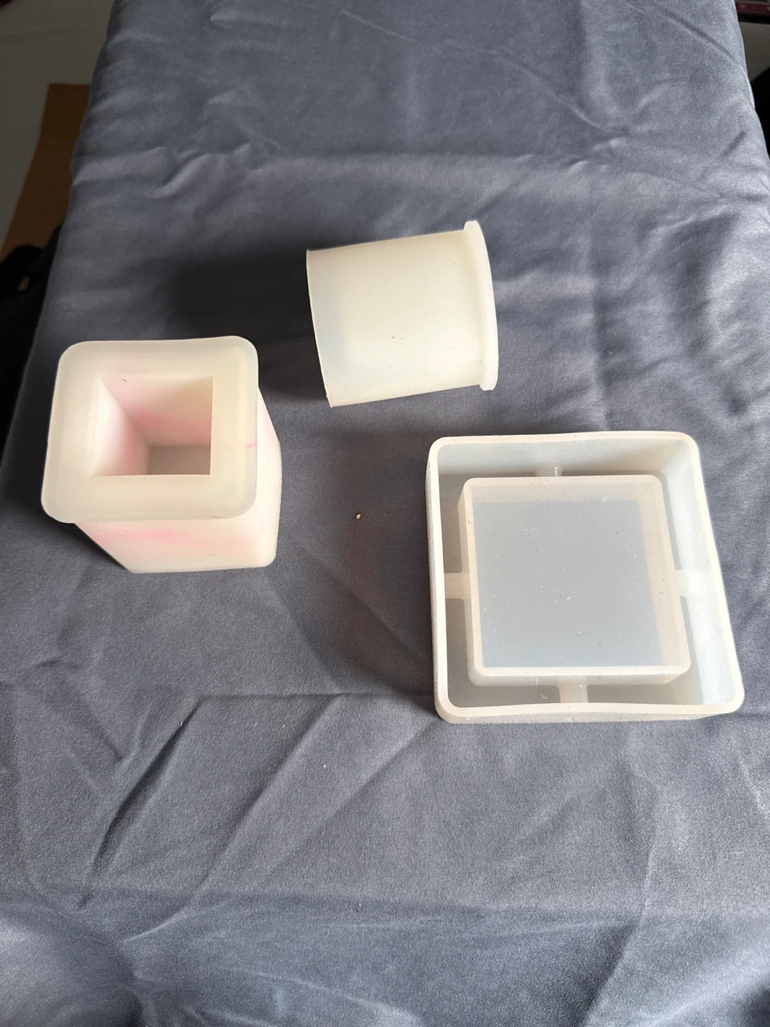 Selling a set of silicone resin molds! Includes square and cylinder shapes, perfect for your crafting projects. They're in great condition and ready for a new home