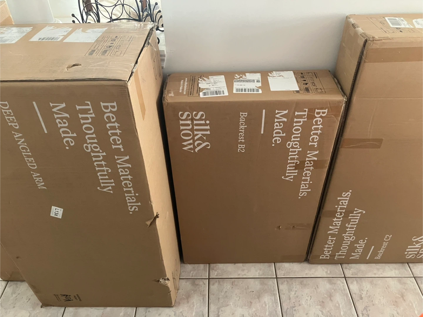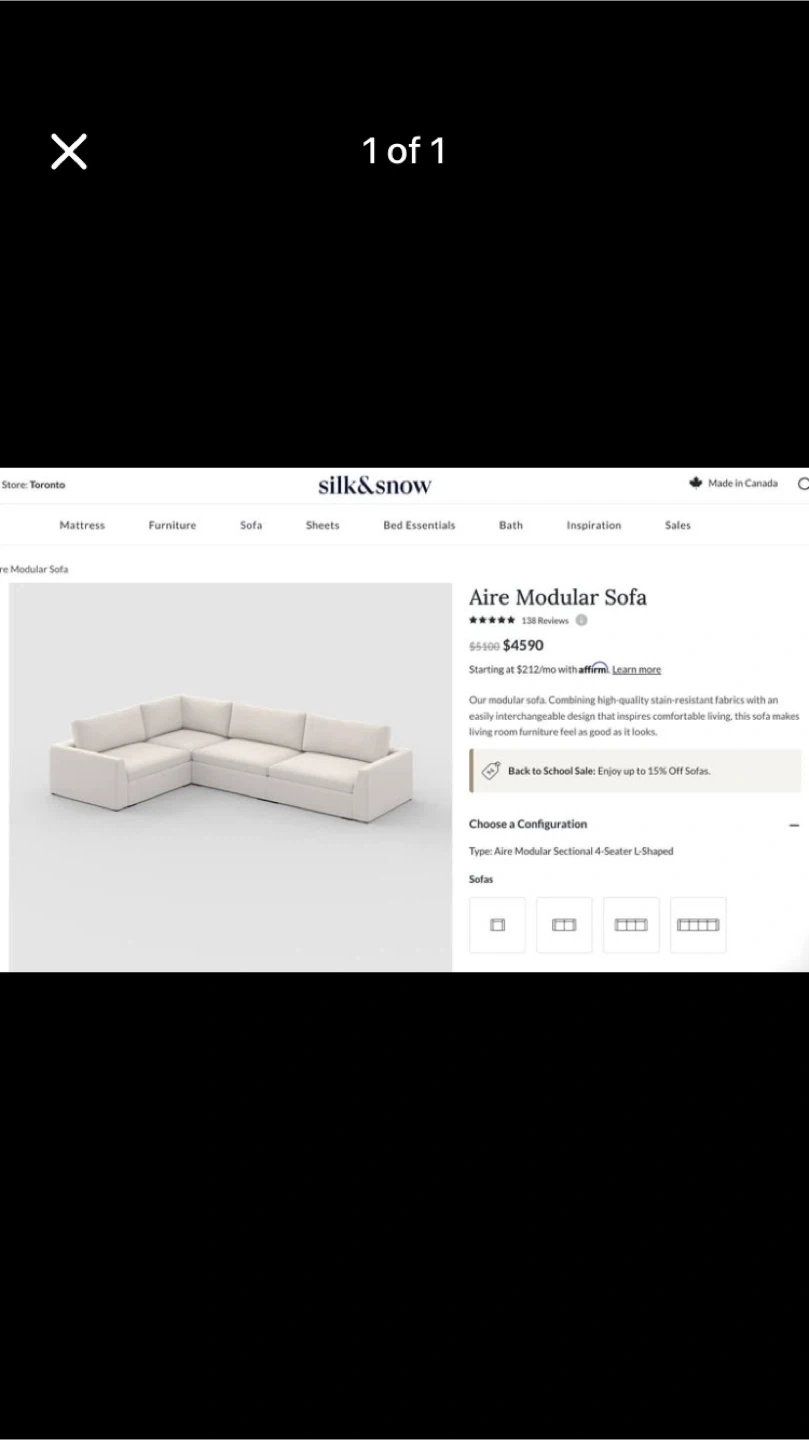 Selling a Silk & Snow Aire Modular Sectional 4-Seater L-Shaped Sofa. Brand new in box. This modular sofa combines high-quality stain-resistant fabrics with an adaptable design. Retails for $4590.