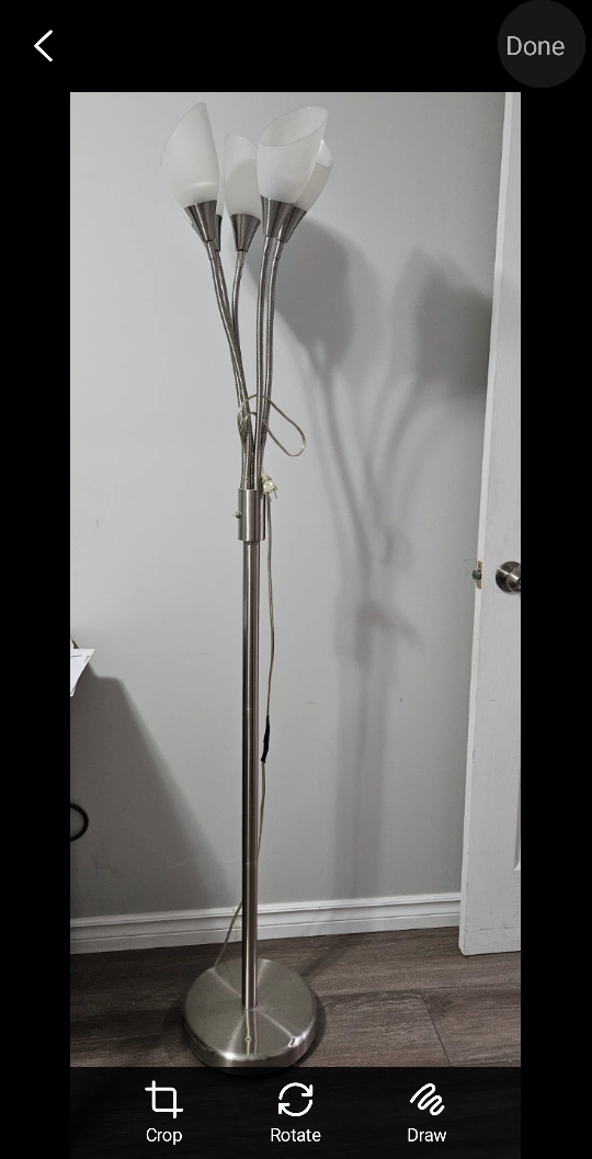 37Selling a floor lamp with five lights. It has a silver finish and would look great in any living room or bedroom. It's in good condition and ready to brighten up your space! Weston Road and Major Mackenzie