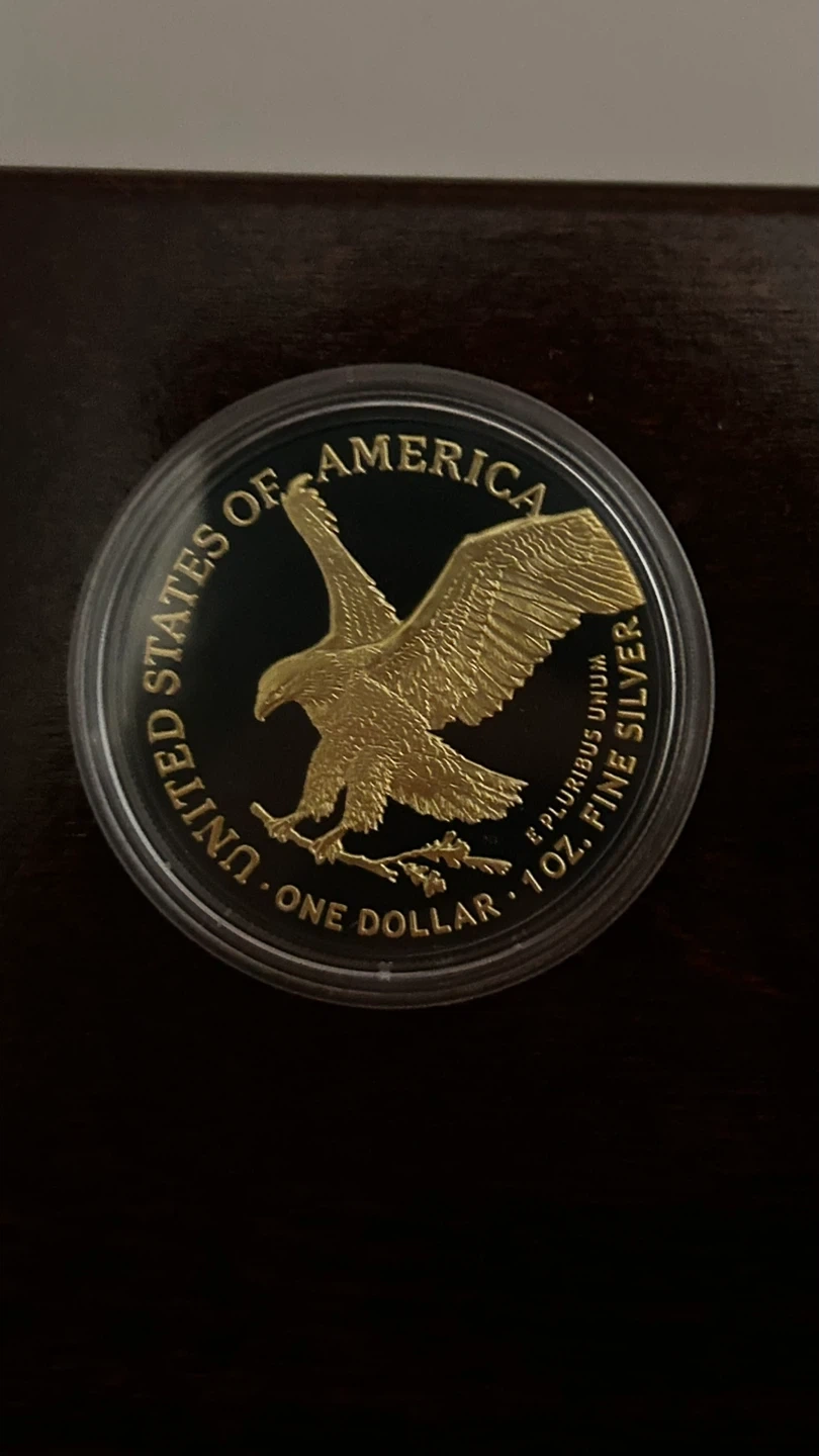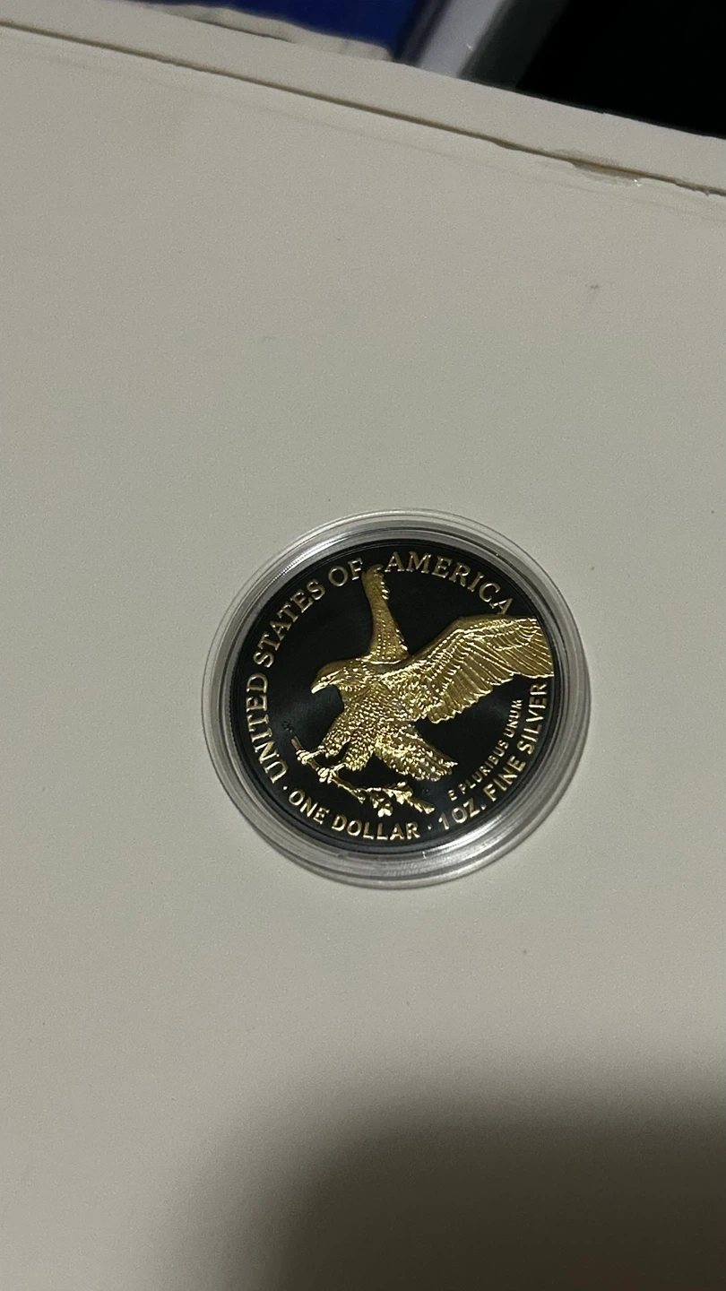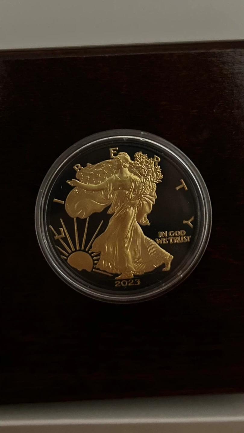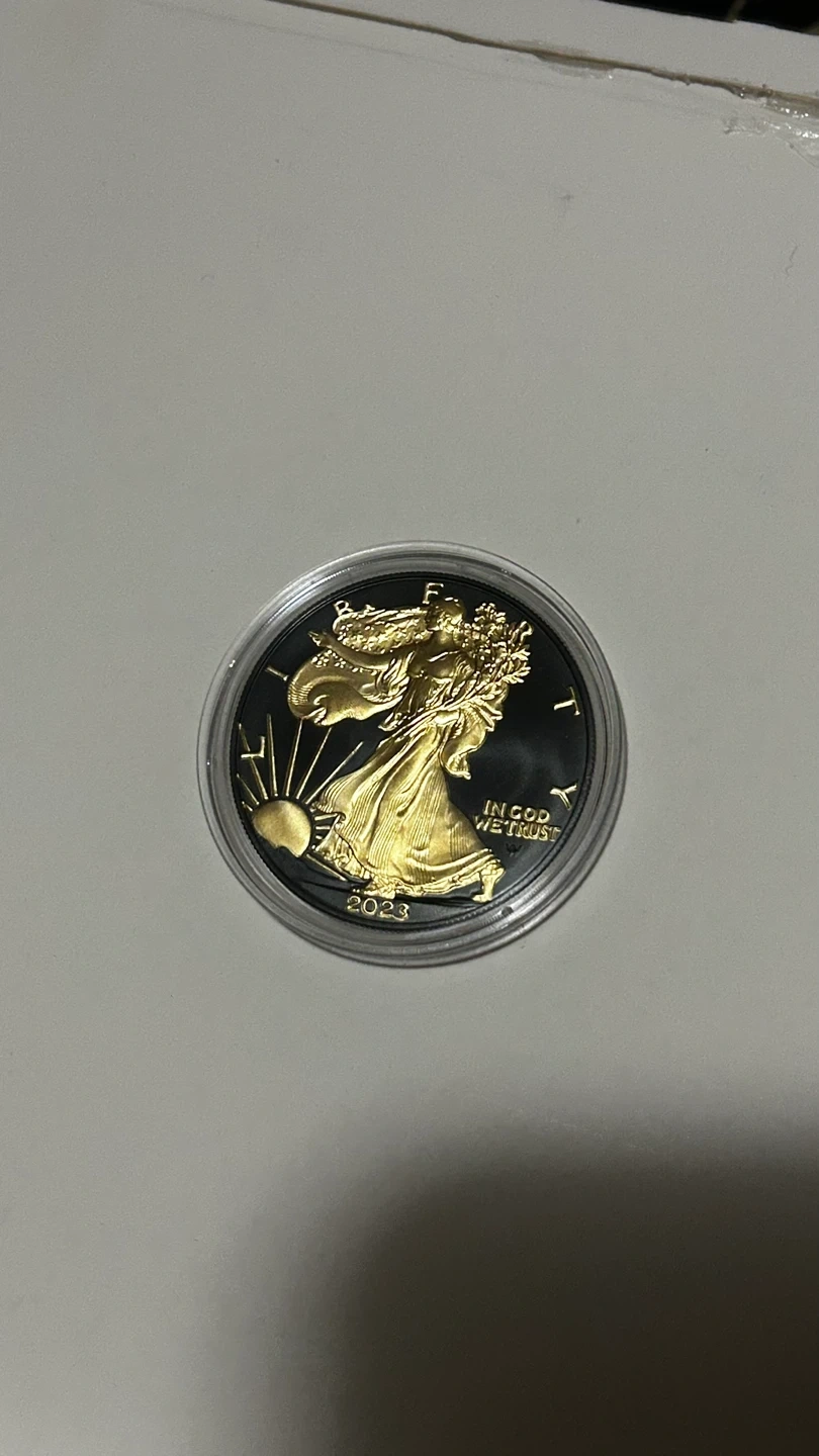 84Selling an American Eagle Black Platinum & 24K Gold Finished Silver coin from 2023. It's in excellent condition and comes with the original box. Features the iconic American Eagle design. A beautiful addition to any collection! 1oz .999 fine silver