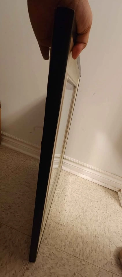 Selling mirror - meet up at 40 Lavery Trail Scarborough or 280 Donlands Avenue Dimension: Incuding frame: 25" x 21" Mirror only area : 20" x 16"
