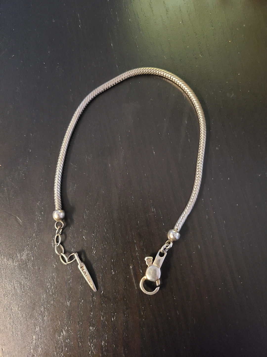 365Sterling silver charm bracelet. Snake chain style. Clasp included. Pre-owned.
