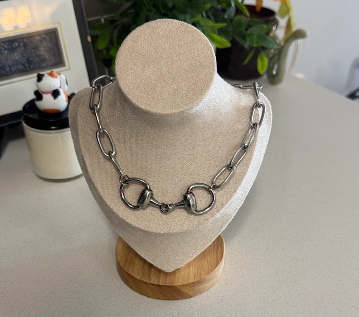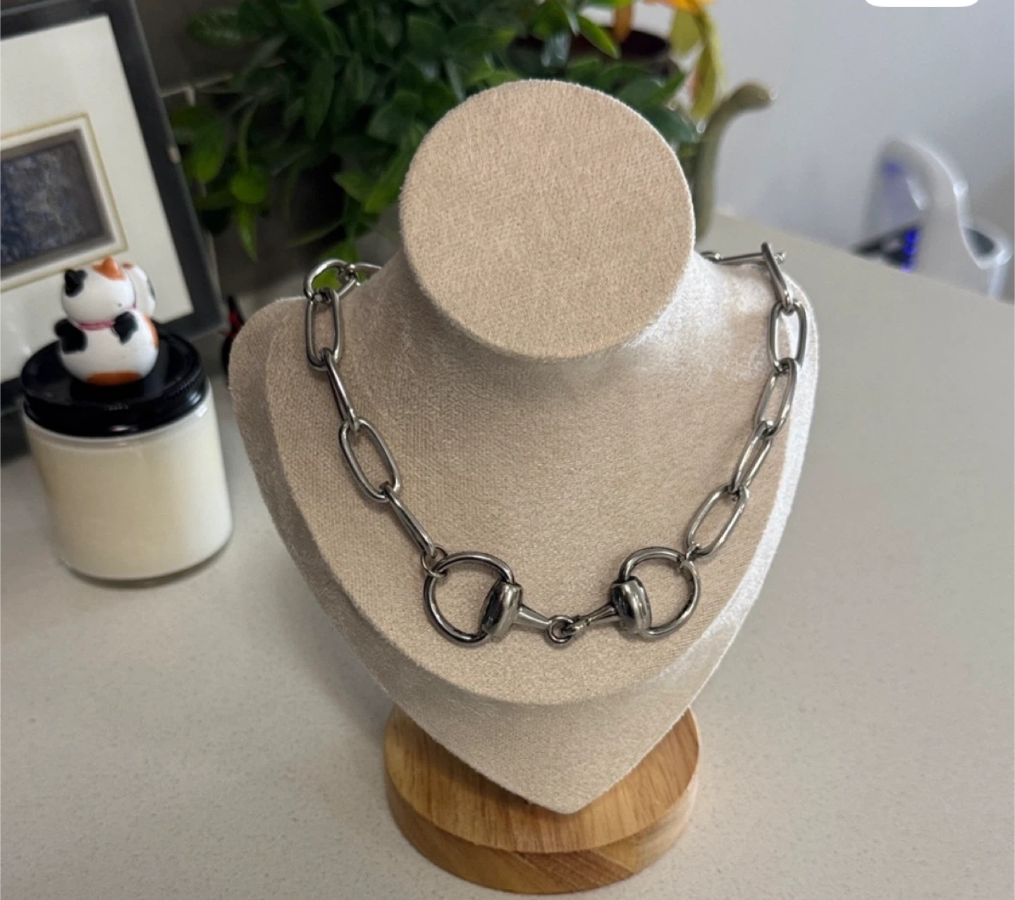 Horsebit Silver Chain choker / necklace (as is scratches) Silver tone, scratches & color missing to back of pendant. See photos for measurements. Longer version avail if interested see listings