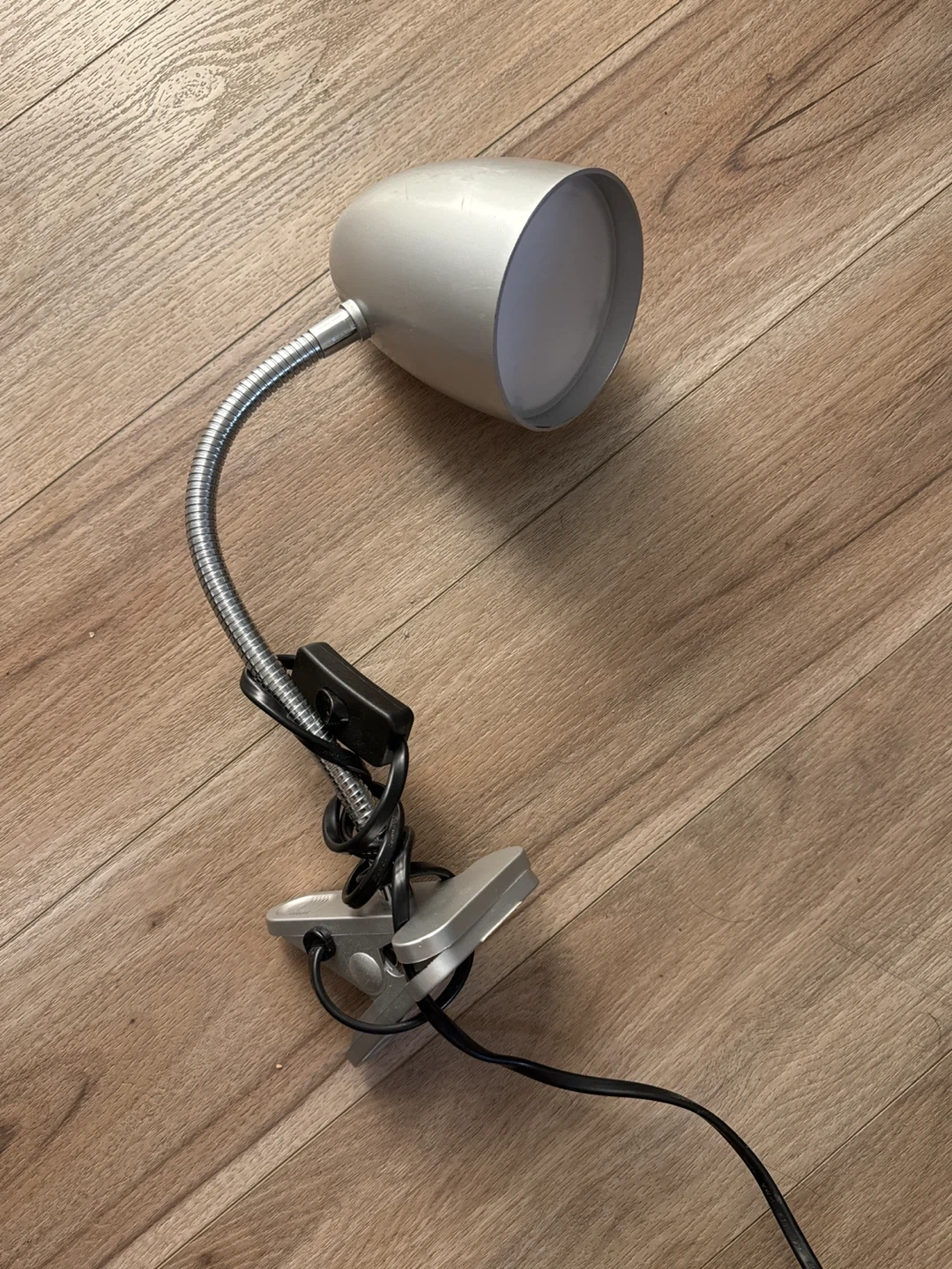 60Selling a handy silver clip-on desk lamp! It's perfect for a desk, bedside table, or anywhere you need a little extra light. It's in great shape and ready to brighten up your space