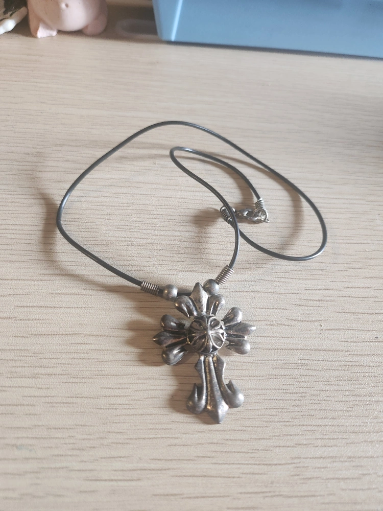 Cross necklace for sale from a small business hand package with a Goody inside and a thank you car.