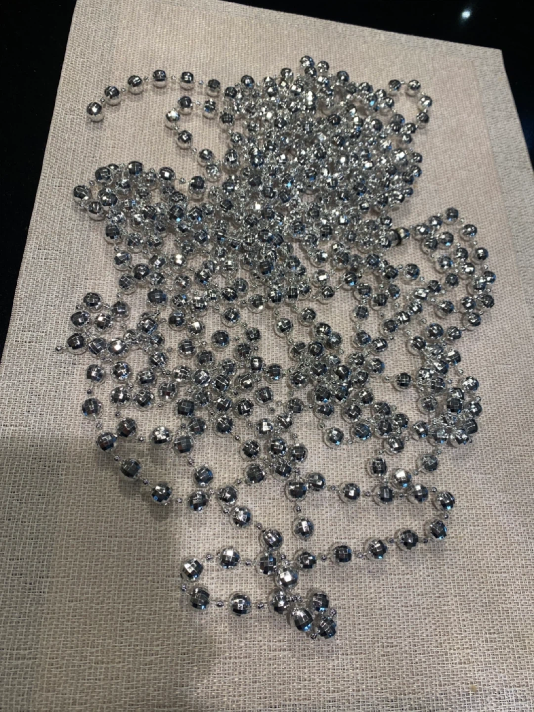 98Selling a silver beaded garland. It's in great condition and would be perfect for decorating!