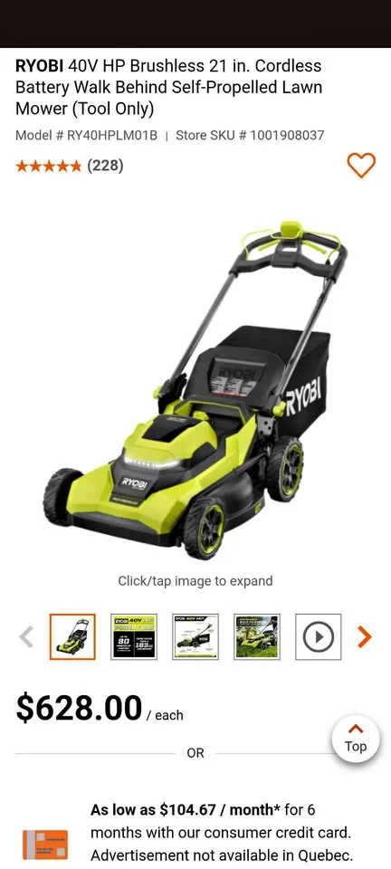 Show allNew Ryobi 40v 21" Self-propelled Lawnmower (Tool Only)