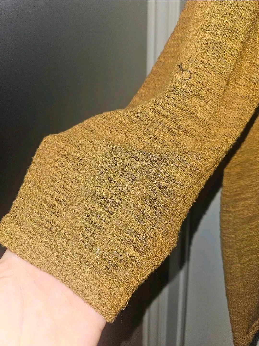 10Size - L/XL Super cute shark bite style, lightweight knit top. Flowy, super soft Perfect for all season wear. An oversized fit. Price is firm. Porch pick-up North Oshawa at Beatrice and Grandview