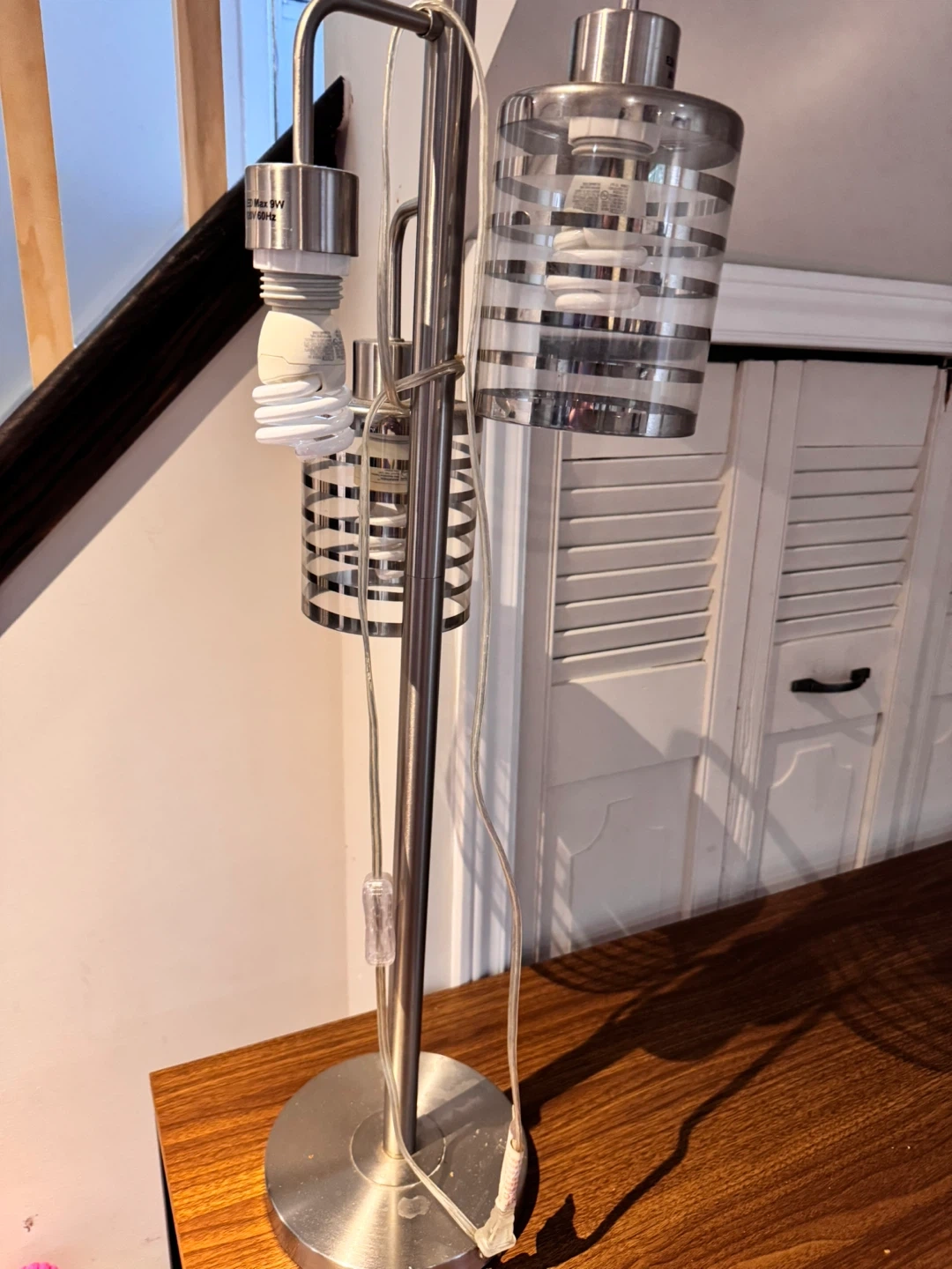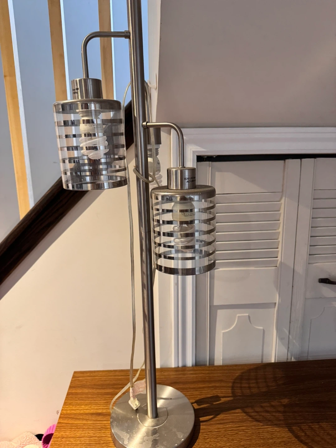 23Selling a sleek silver metal floor lamp! It features a unique design with multiple lights and a sturdy base. It would look great in any living room, bedroom, or office space Pickup lawrence and markham rd