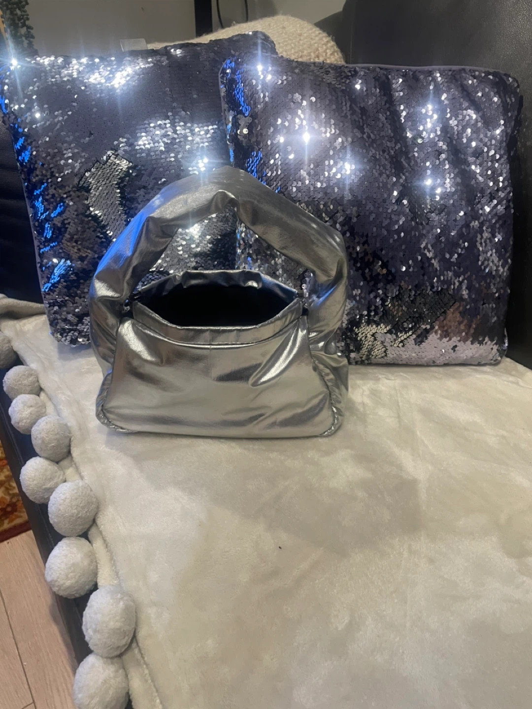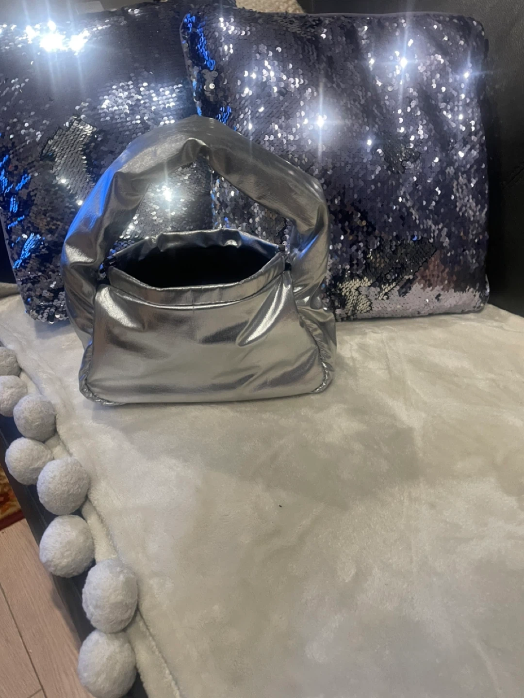 243Here's a cute silver metallic padded tote bag! It's Brand New and ready for a new home. Perfect for adding a bit of shine to your outfit! Click closing. Canadian Brand! Urban Expression.