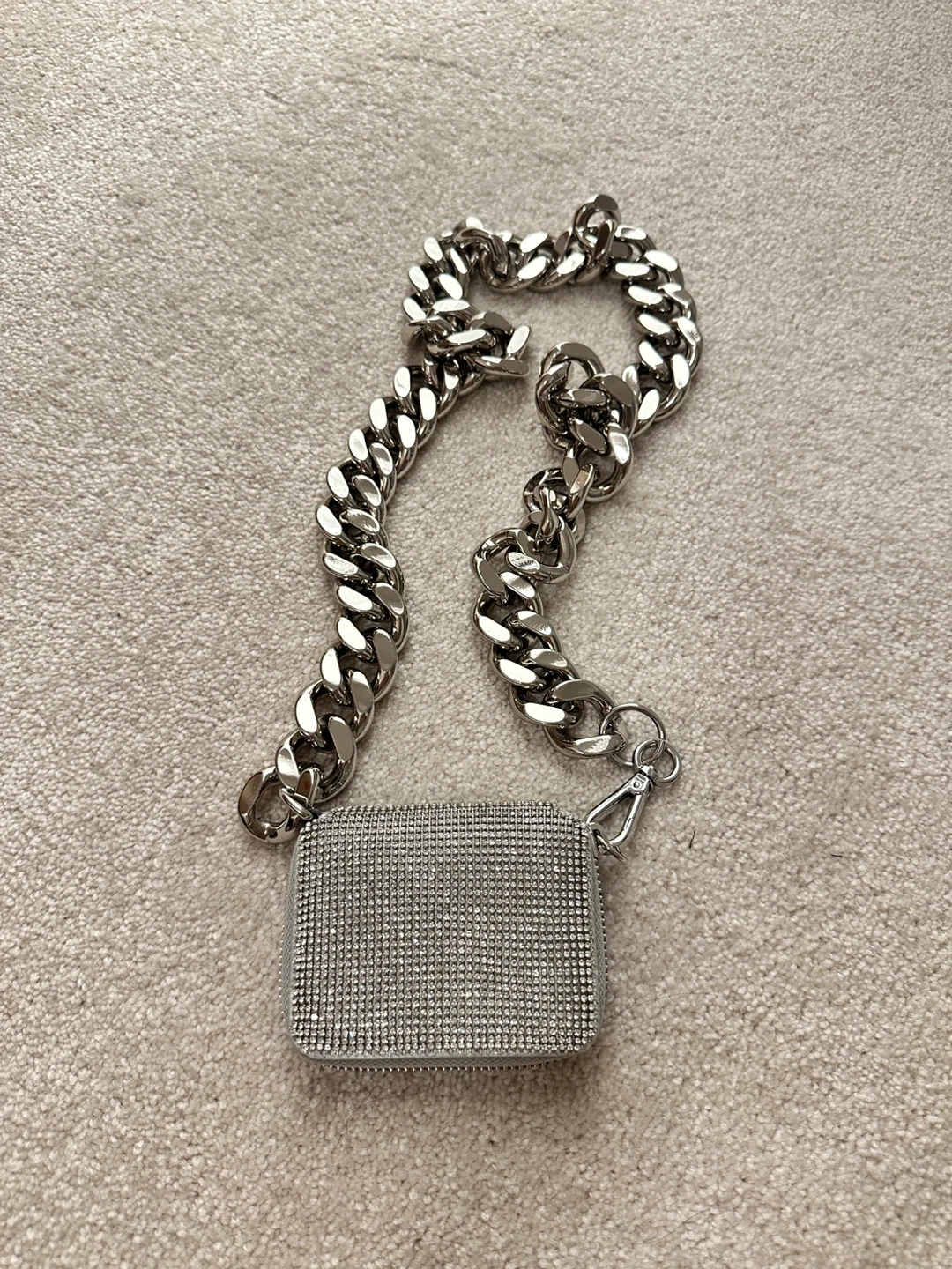10Cute silver rhinestone bag with a chain strap. Perfect for a night out!