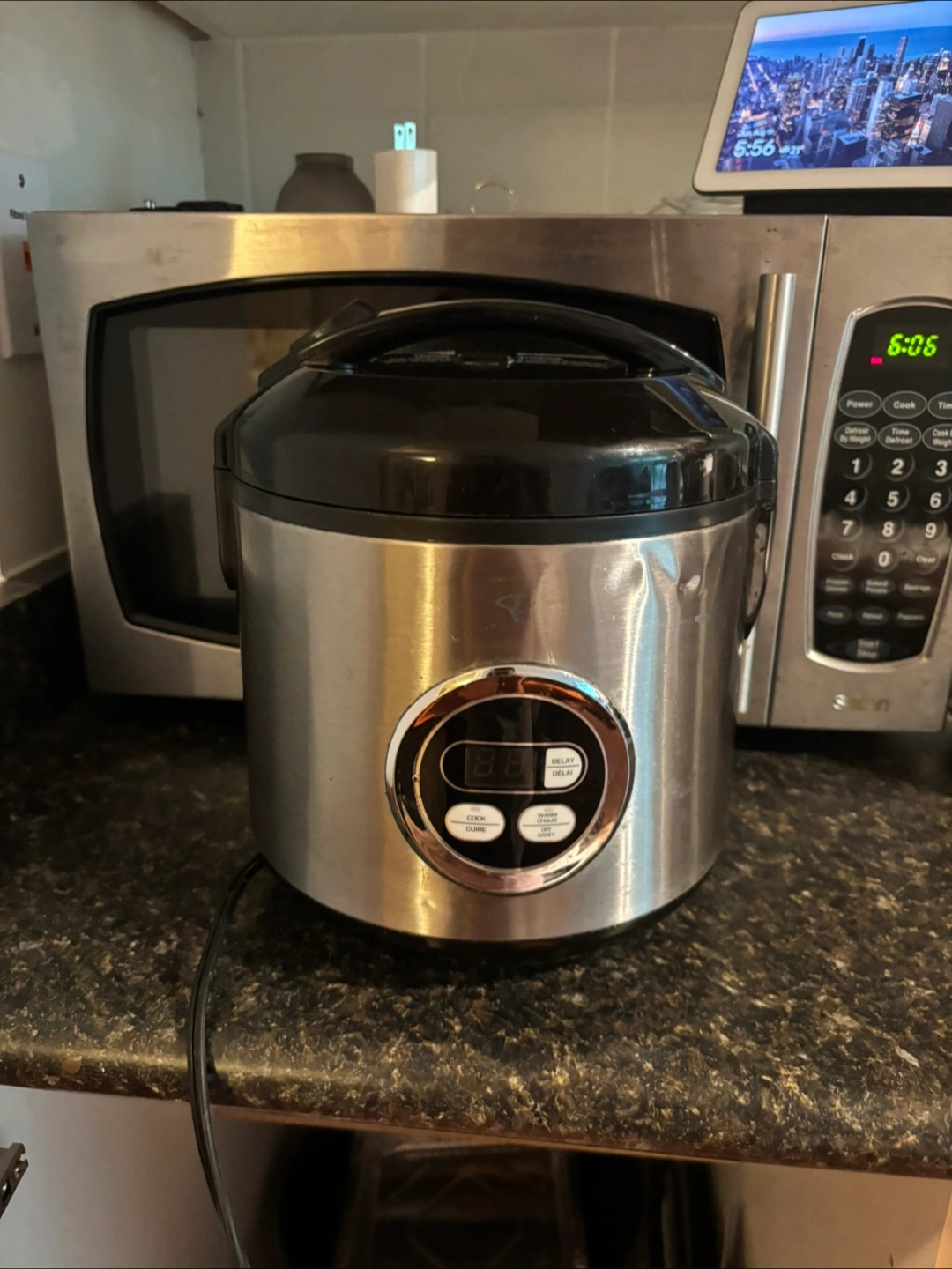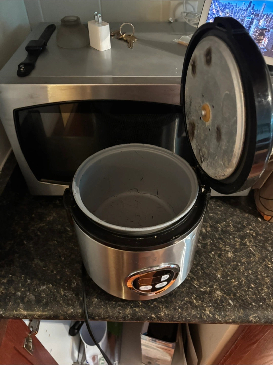 Selling a used silver rice cooker. It has some signs of use, but is still in good working condition. Perfect for making rice for one or two people!