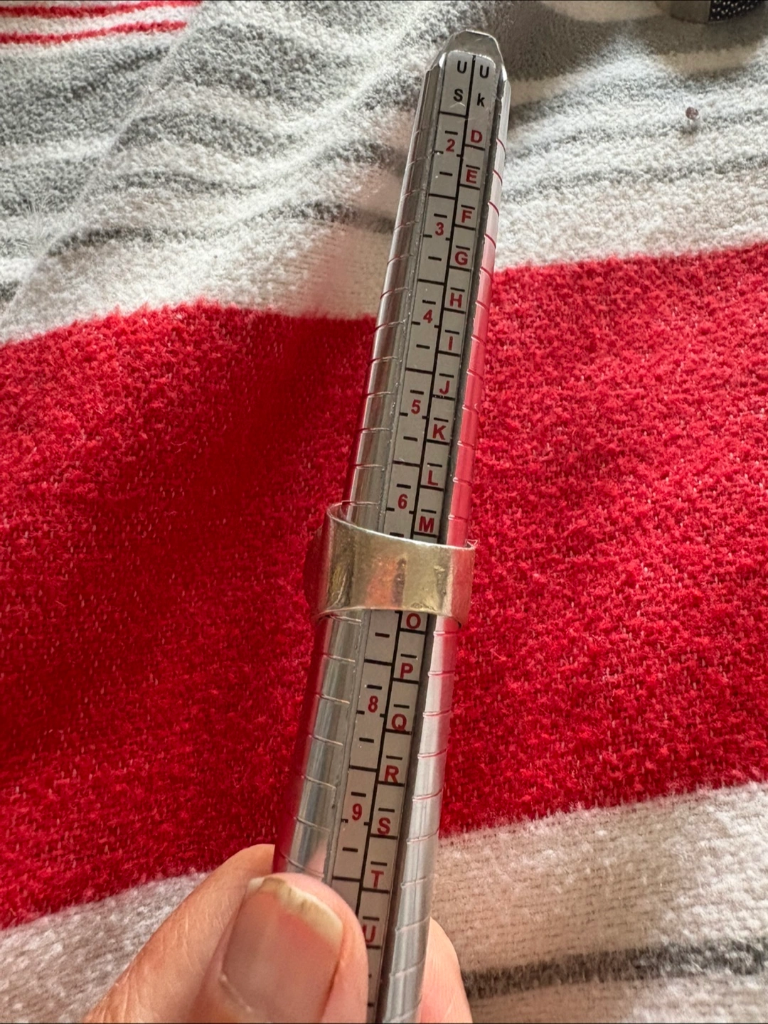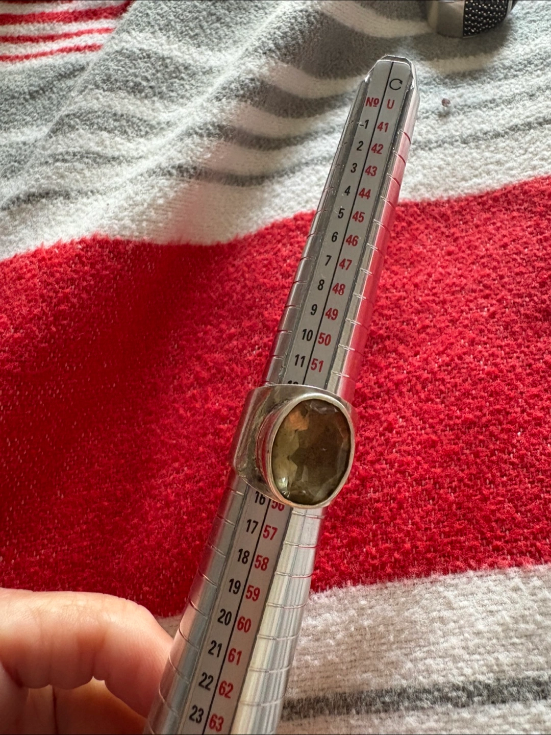 Selling a silver ring. It appears to be a size 8 based on the ring sizer in the photos. A great piece to add to your collection!