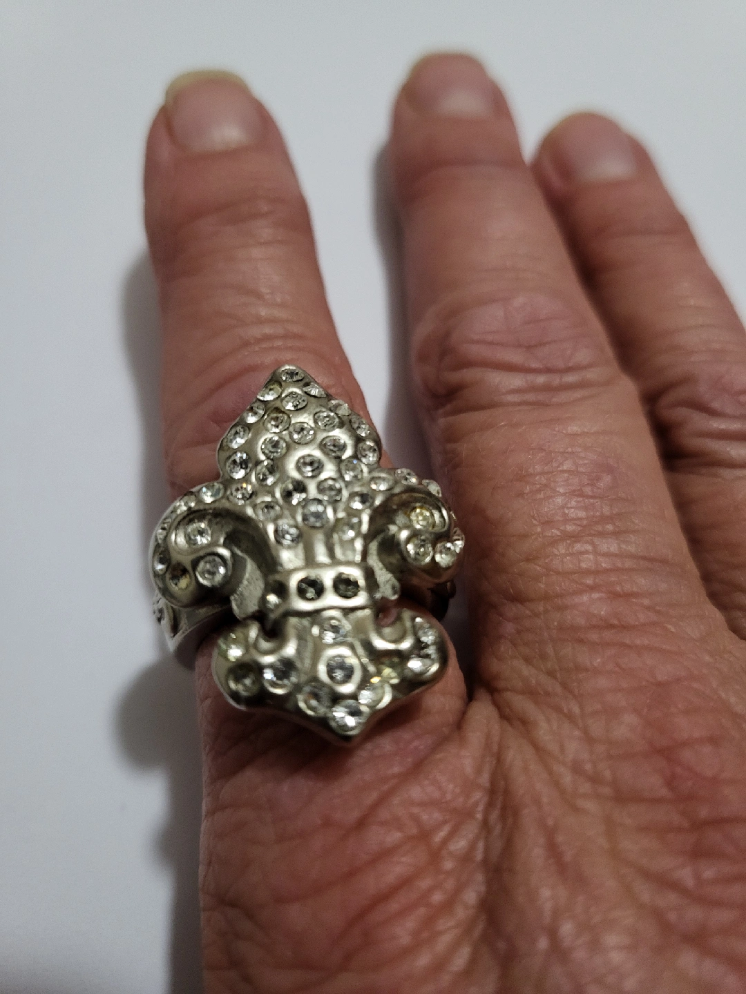 Selling a silver-tone ring with a fleur-de-lis design. It's marked 'Sisi Amber' on the inside. Size 9 PU on Worthington off St Annes or Whyte Ridge. Delivery $5-$10 in Wpg