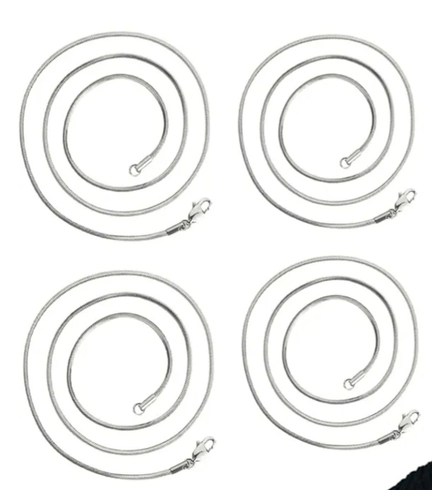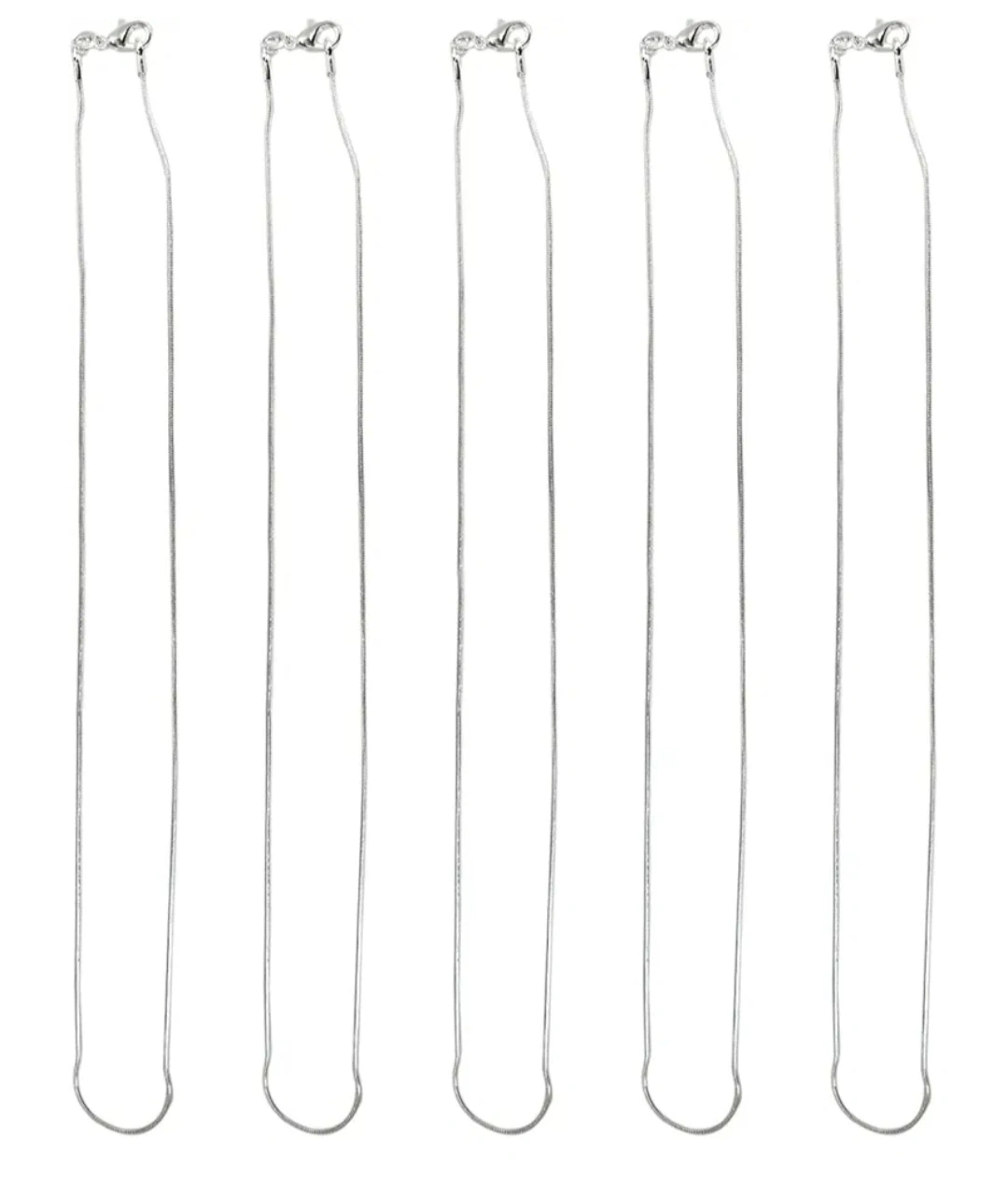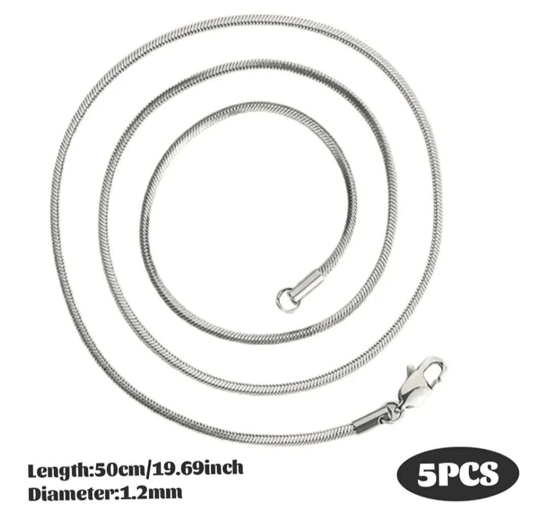 114Selling a set of 5 silver snake chain necklaces. Each necklace is 19.69 inches (50cm) long and has a diameter of 1.2mm. They are made of titanium steel material and are not prone to allergies or fading! Originally purchased at $7 each. $1, as always. All jewelry listed are thoroughly disinfected and cleaned before selling. Different colours and styles also listed. Contact for more availabilities and/or details.