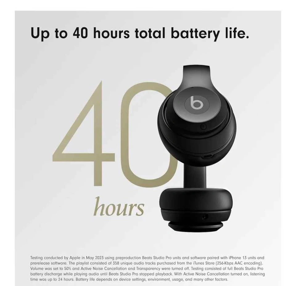 Beats Studio Pro - Auriculares inalámbricos de alta calidad, batería de hasta 40 horas, cancelación activa de ruido, audio USB-C sin pérdida, compatible con Apple y Android, color negro