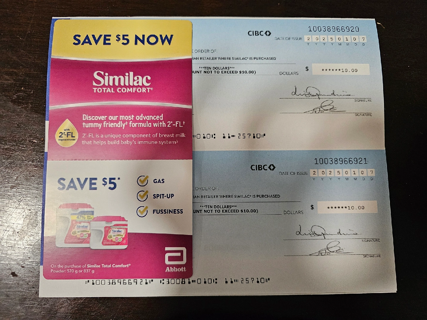 115FREE two CIBC cheques, each worth $10 towards Similac products. Also including a coupon. Expire Jan 1, 2026