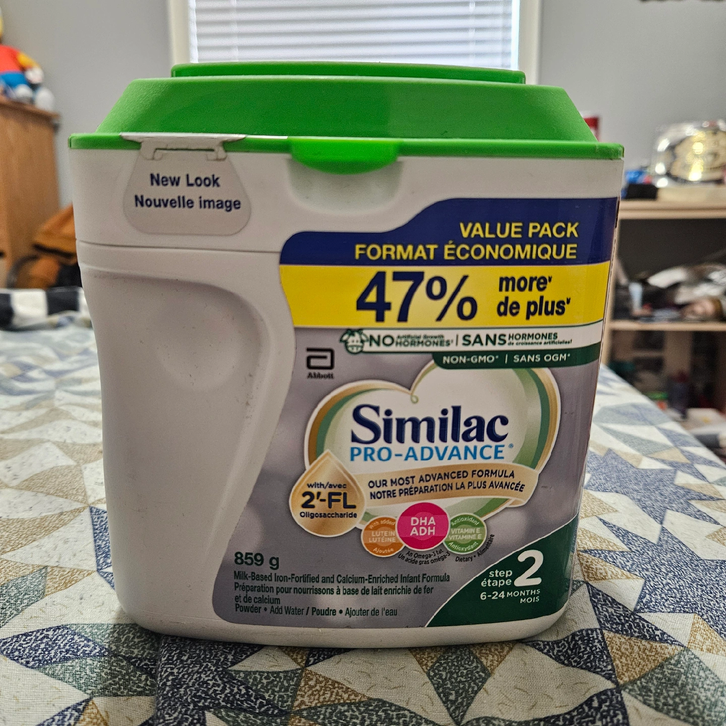 Selling a container of Similac Pro-Advance Step 2 infant formula, perfect for little ones aged 6-24 months! This is a value pack with 47% more formula. It's milk-based, iron-fortified, and calcium-enriched. It also contains DHA, lutein, and vitamin E. Powder, just add water!