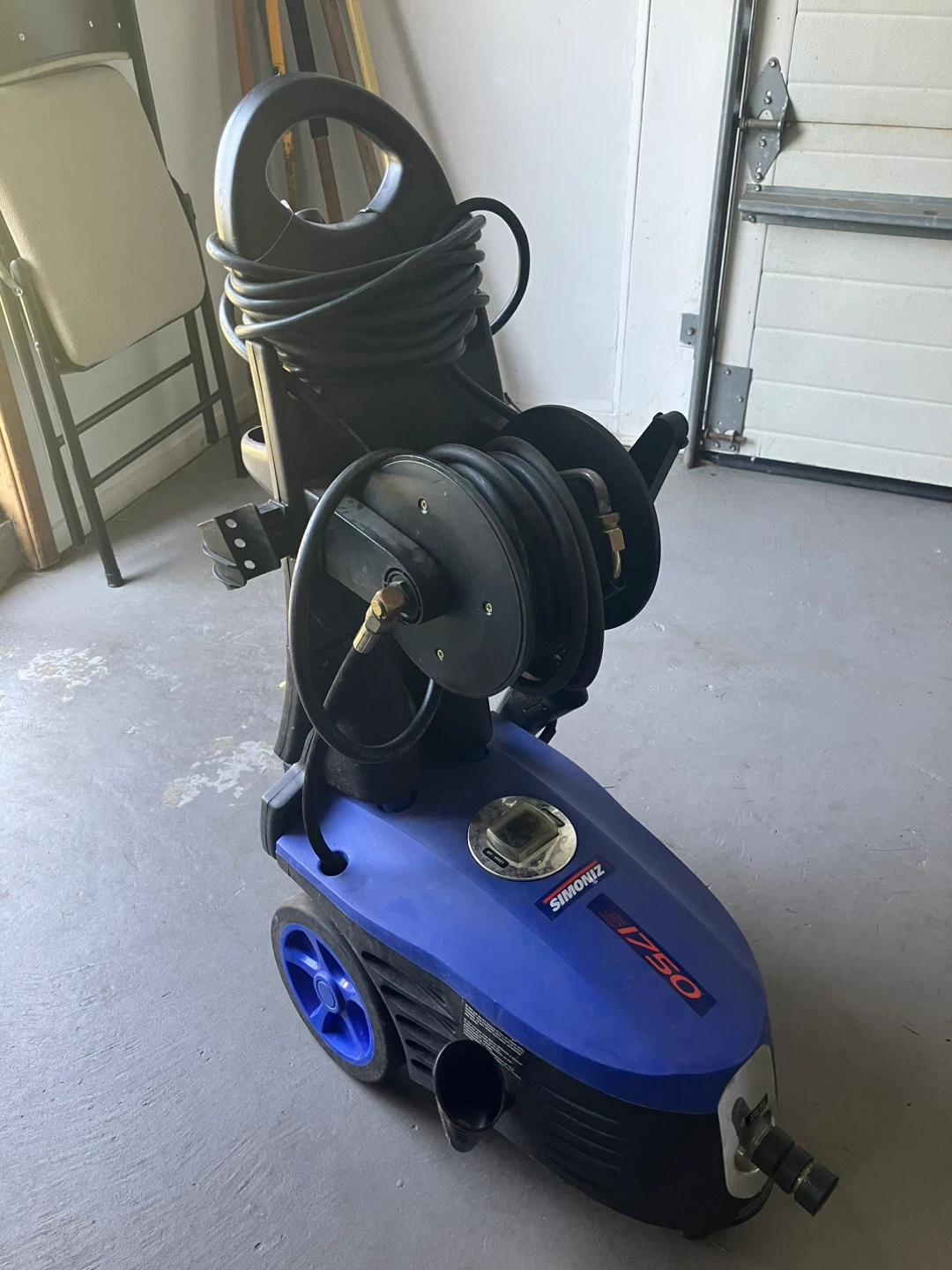 Selling a Simoniz SI1750 pressure washer. It's blue and in good working condition. Great for cleaning your deck, car, or siding!