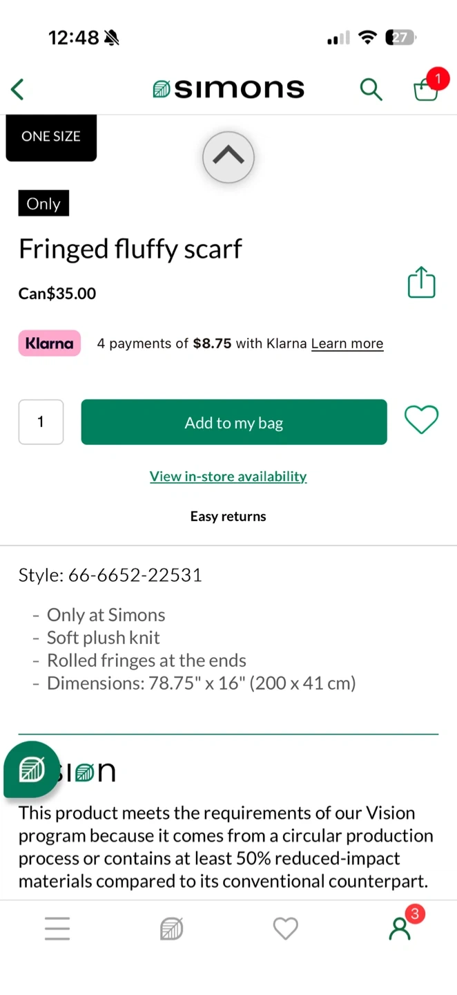 10Keep cozy with this fringed fluffy scarf from Simons! It's a soft plush knit with rolled fringes at the ends. This scarf measures 78.75" x 16" (200 x 41 cm). Originally bought for $35+taxes at Simons Used once like brand new