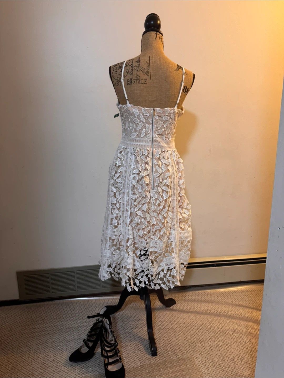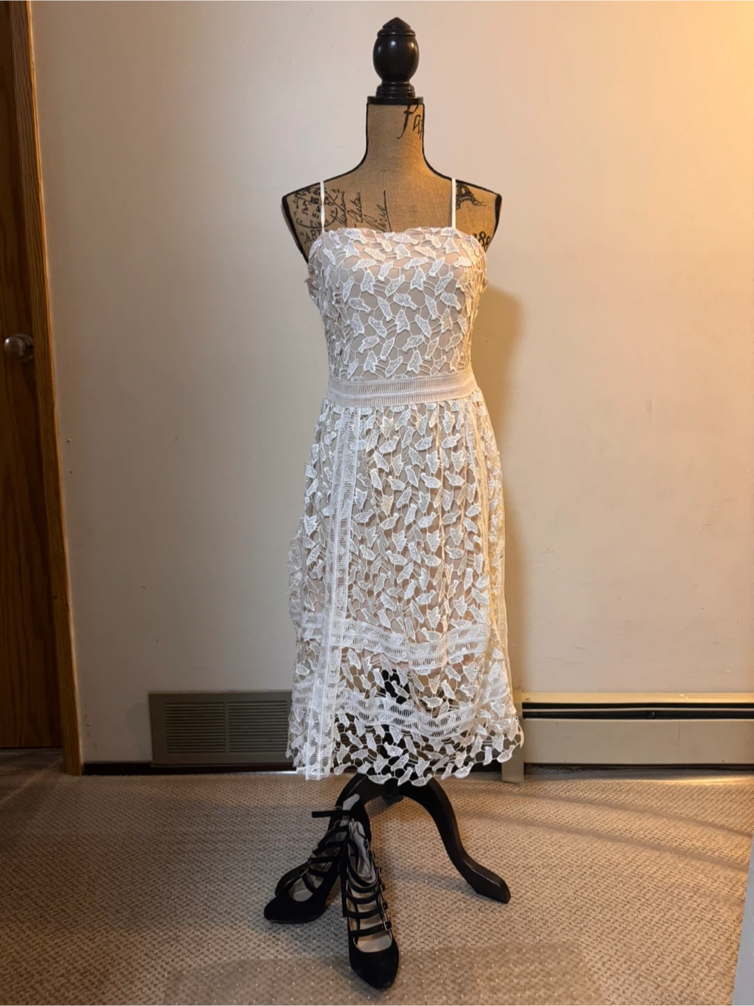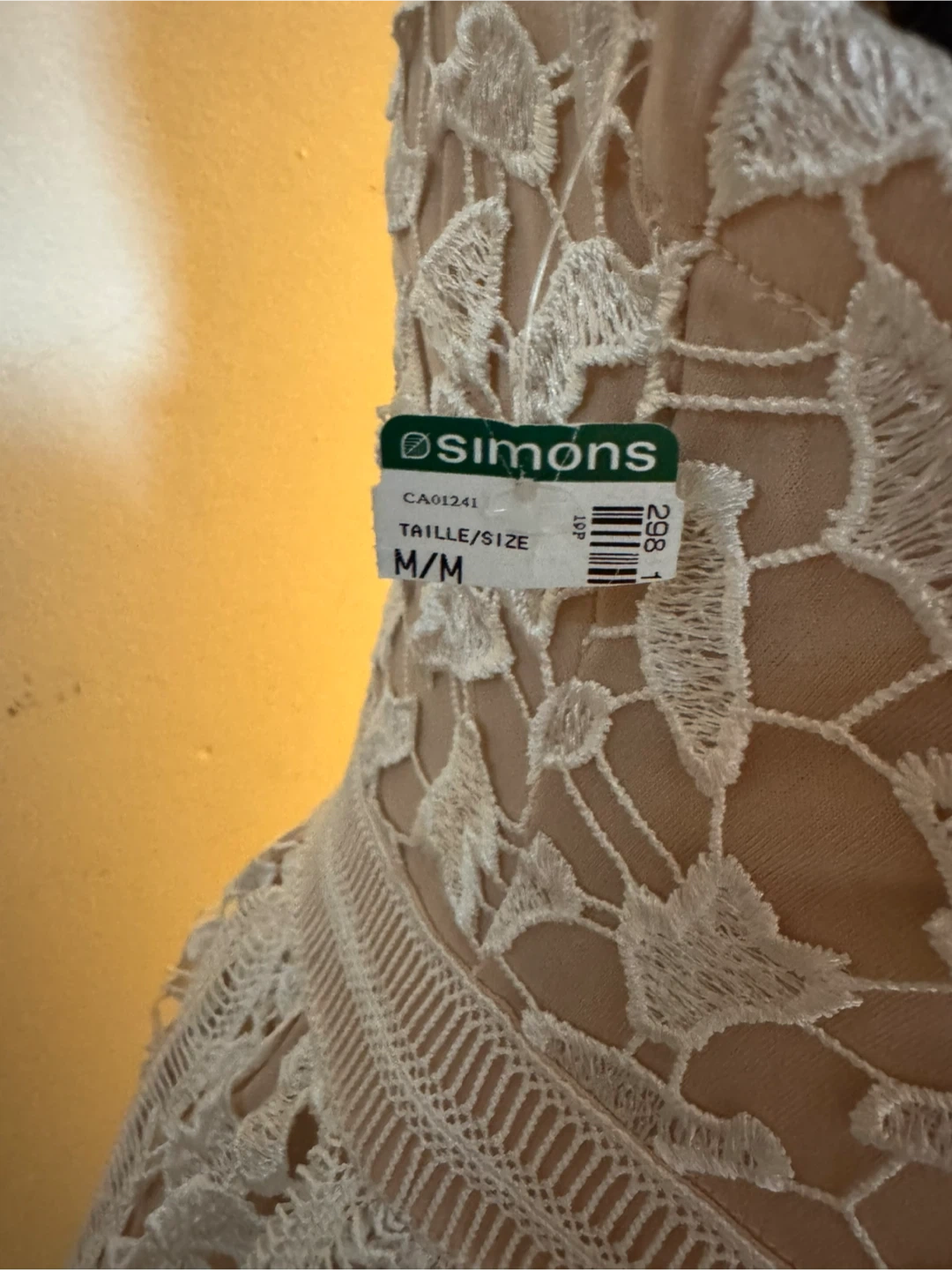 Selling a beautiful white lace dress from Simons. size M in great condition