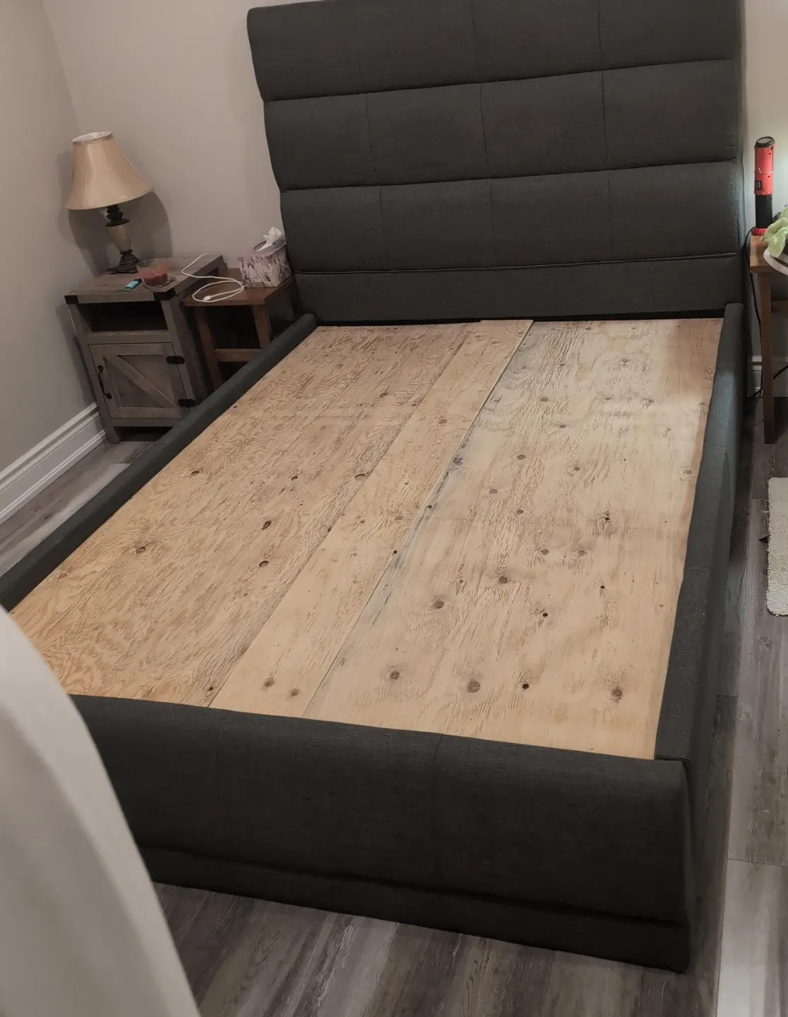 Dark Grey Upholstered Bed Frame with Plywood Slats