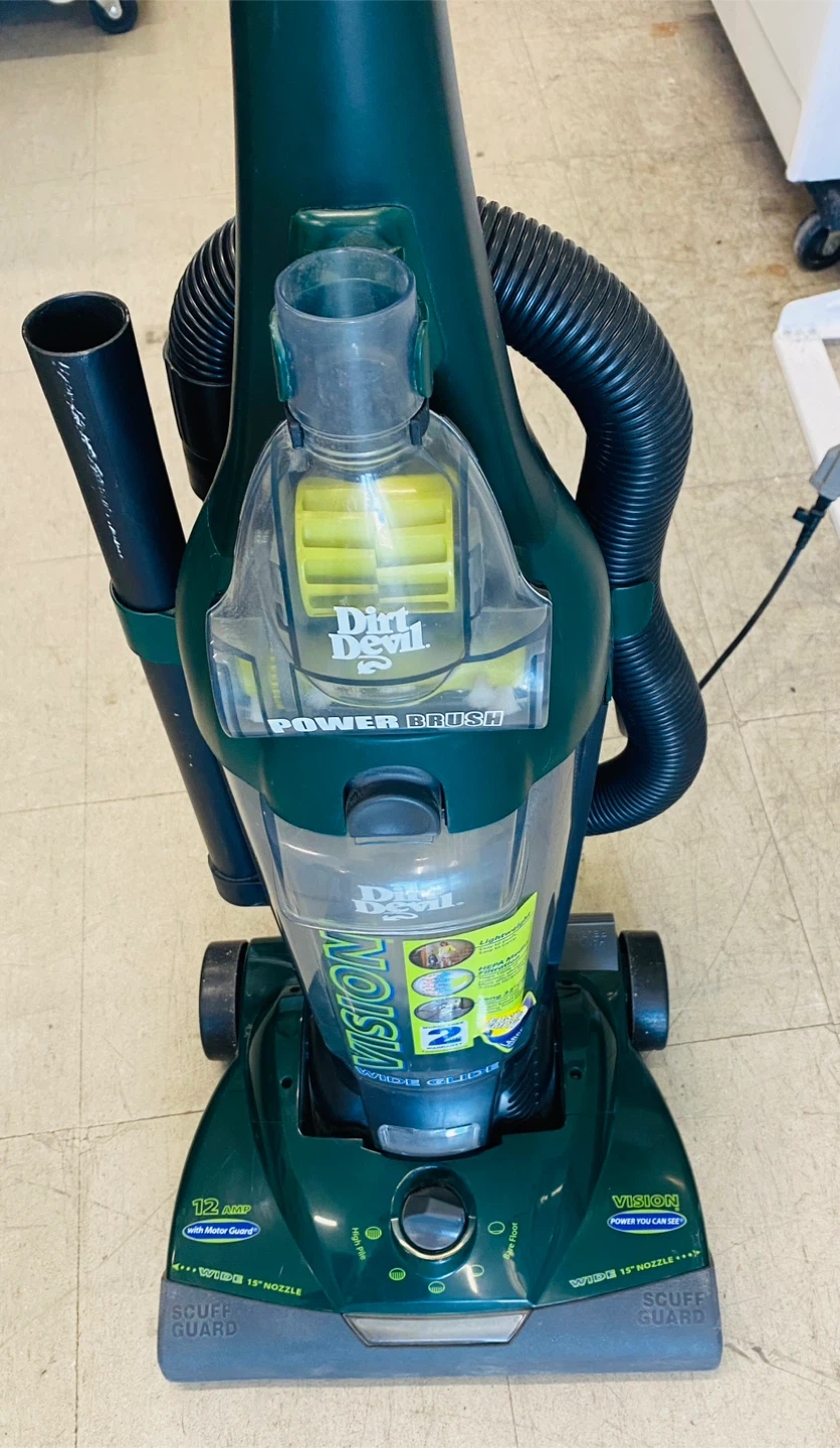 Dirt Devil Vision Upright Vacuum, multisurface plus model featuring 15” sweep, with multi attachments for upholstery, drapes, etc. Also has an easy empty dust canister. Rarely used new condition. $95. 204-661-4750