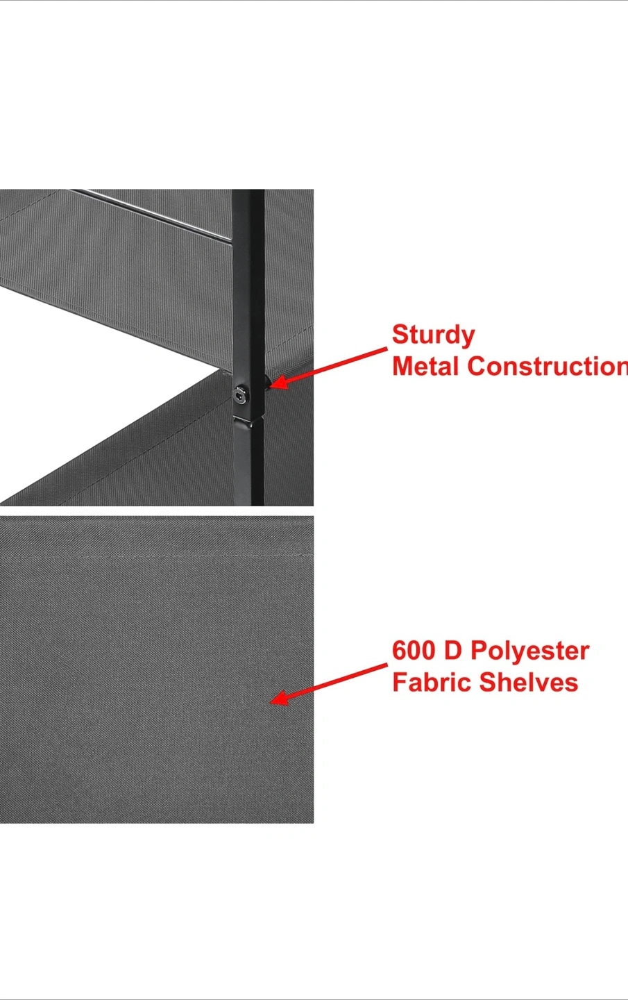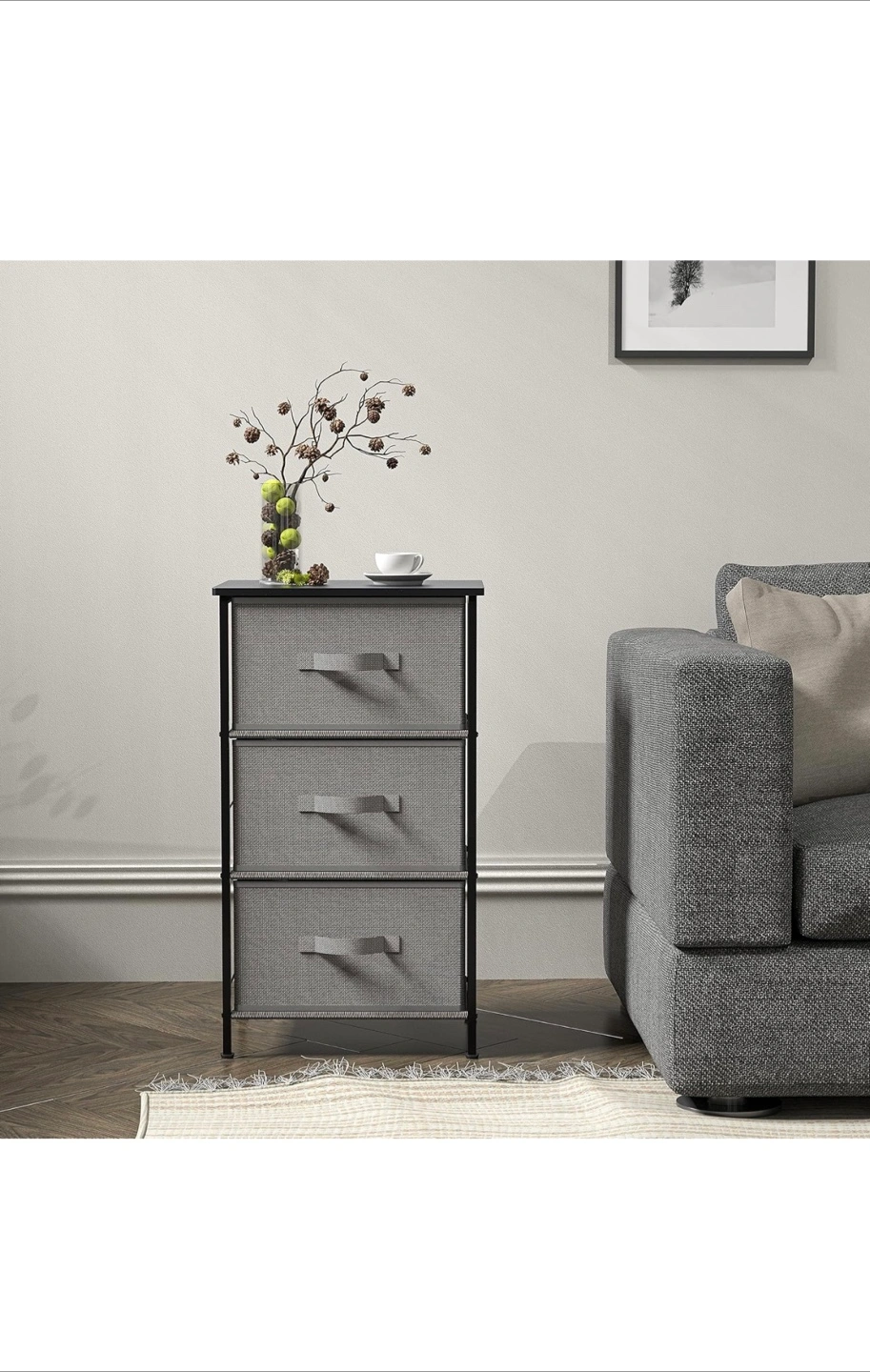 Three-drawer fabric storage unit. Sturdy metal frame. Grey fabric drawers. Bronze colour. Compact and functional. 1 piece: 40 2 piece:70 3 pieces: 100