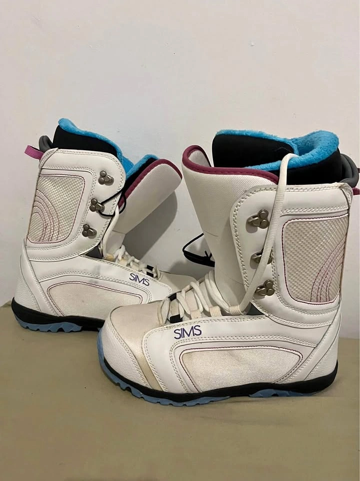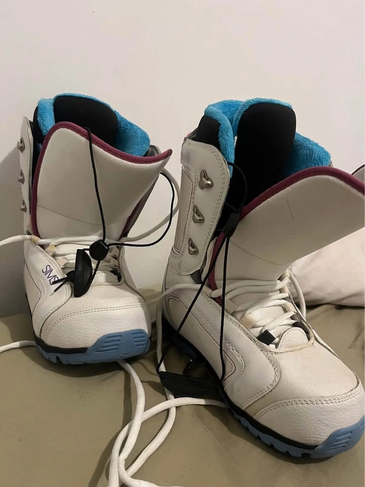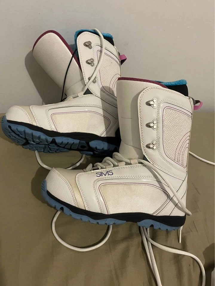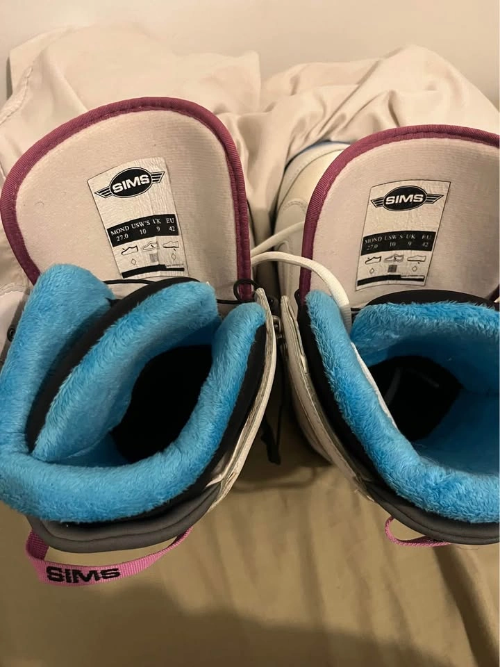 10Sims white with pink trim. Never wore. Women’s size 10. Some marks from being moved around and stored in closet.