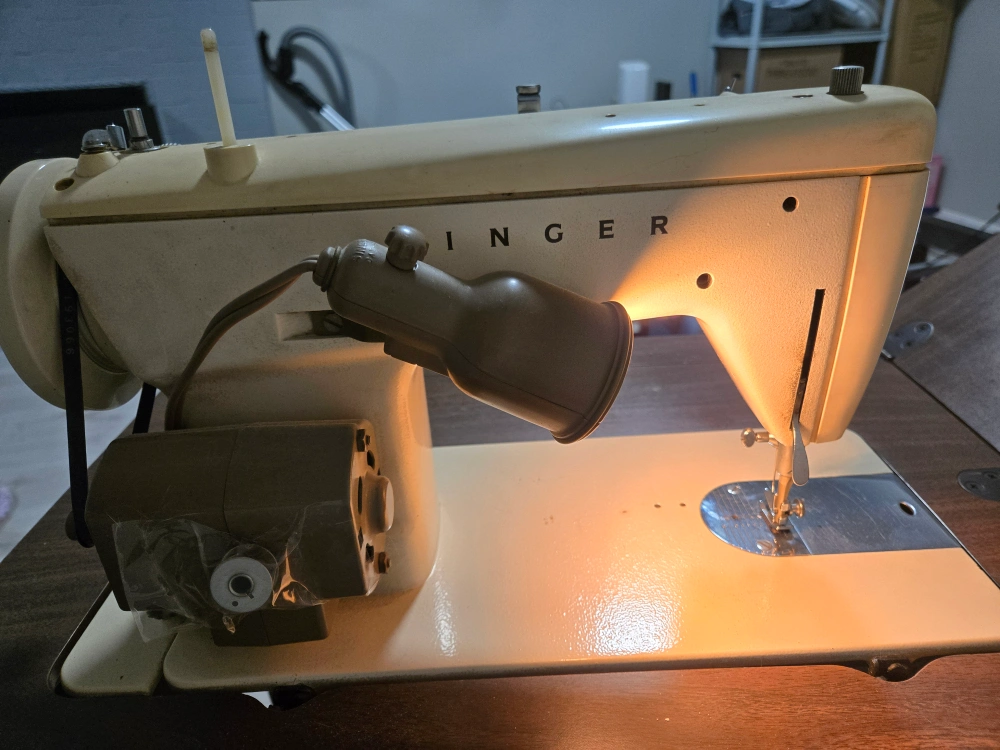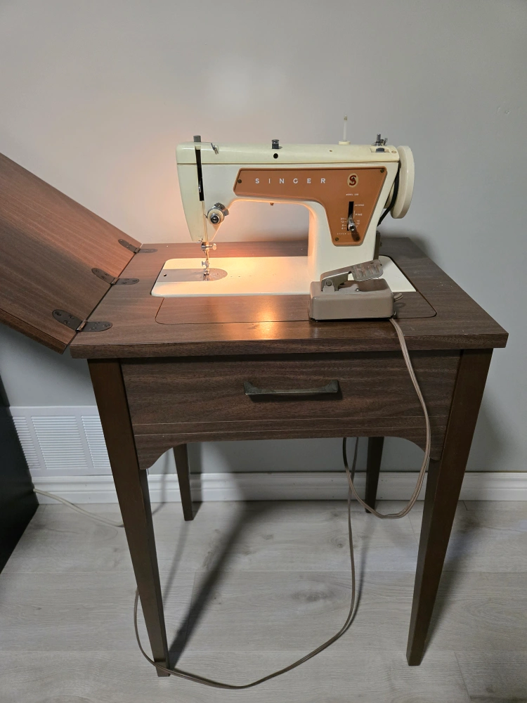 Selling a Singer sewing machine, Model 239. It's in good working condition and ready for your sewing projects! The machine comes with its original table/cabinet. It has some signs of use.