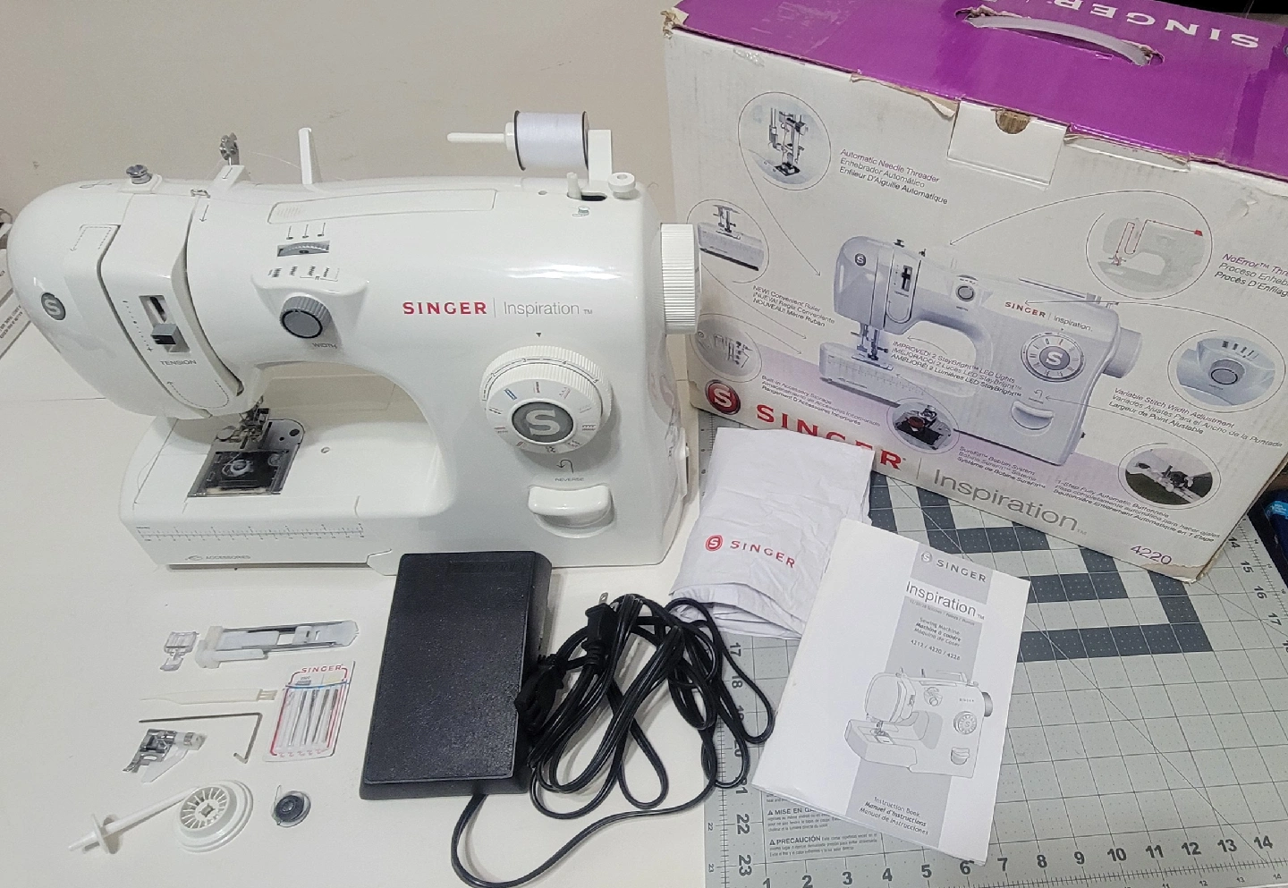 Selling a Singer Inspiration sewing machine, model 4220. It's in great condition and comes with the original box. Included are the foot pedal, accessories, manual, and the dust cover to keep it clean and protected