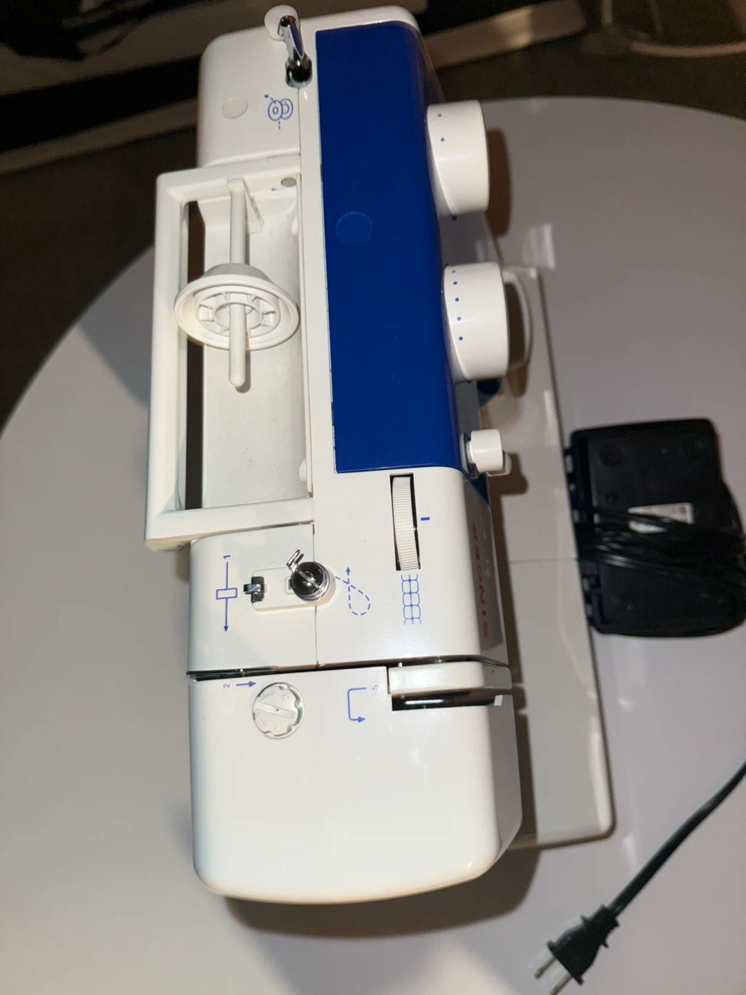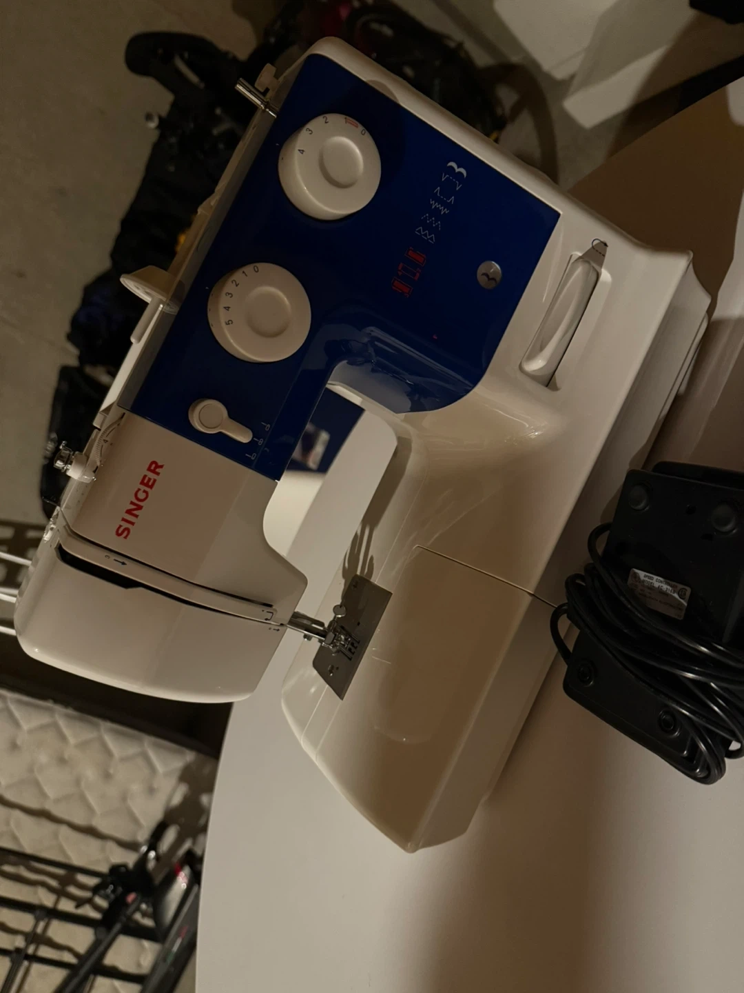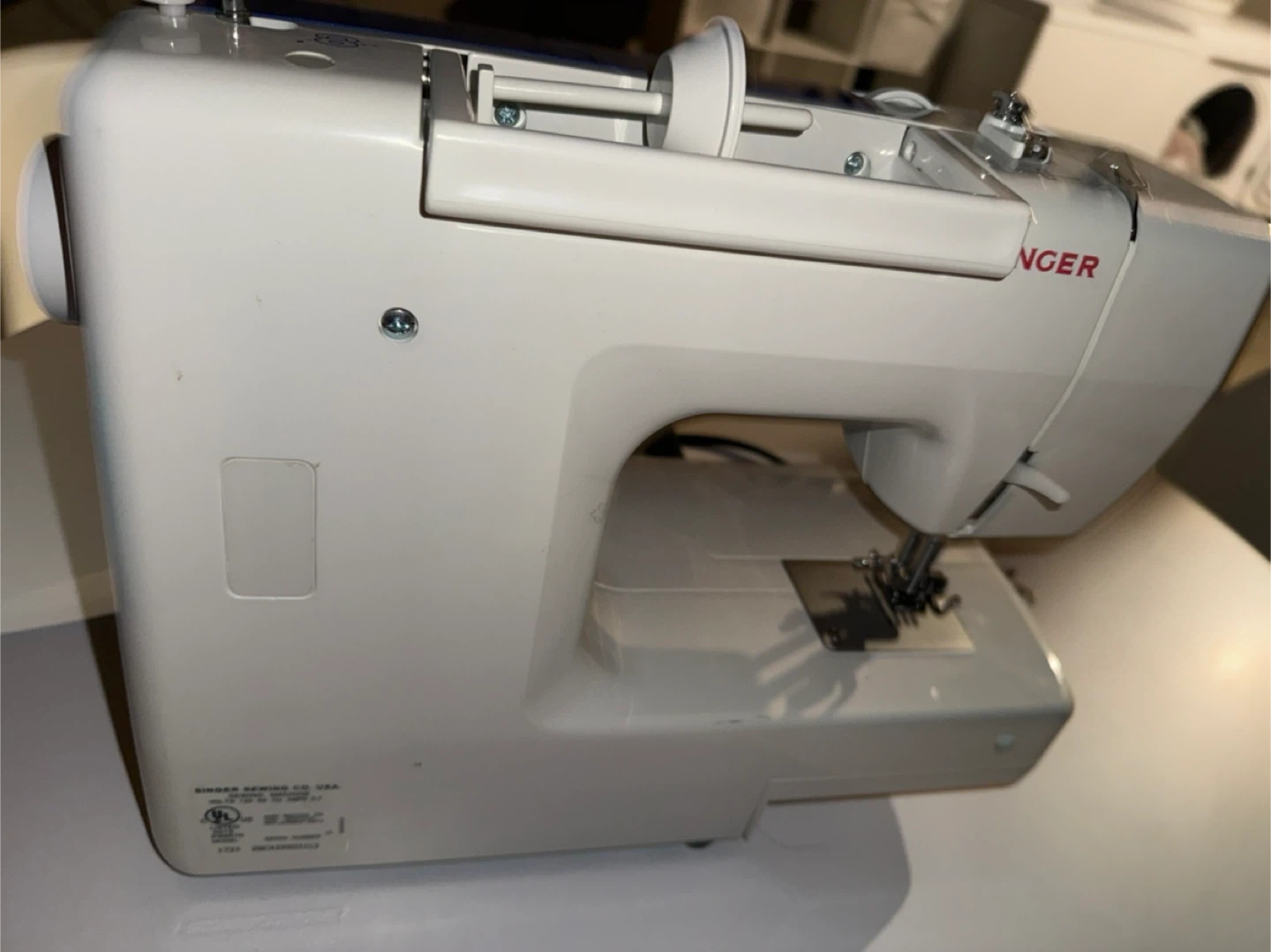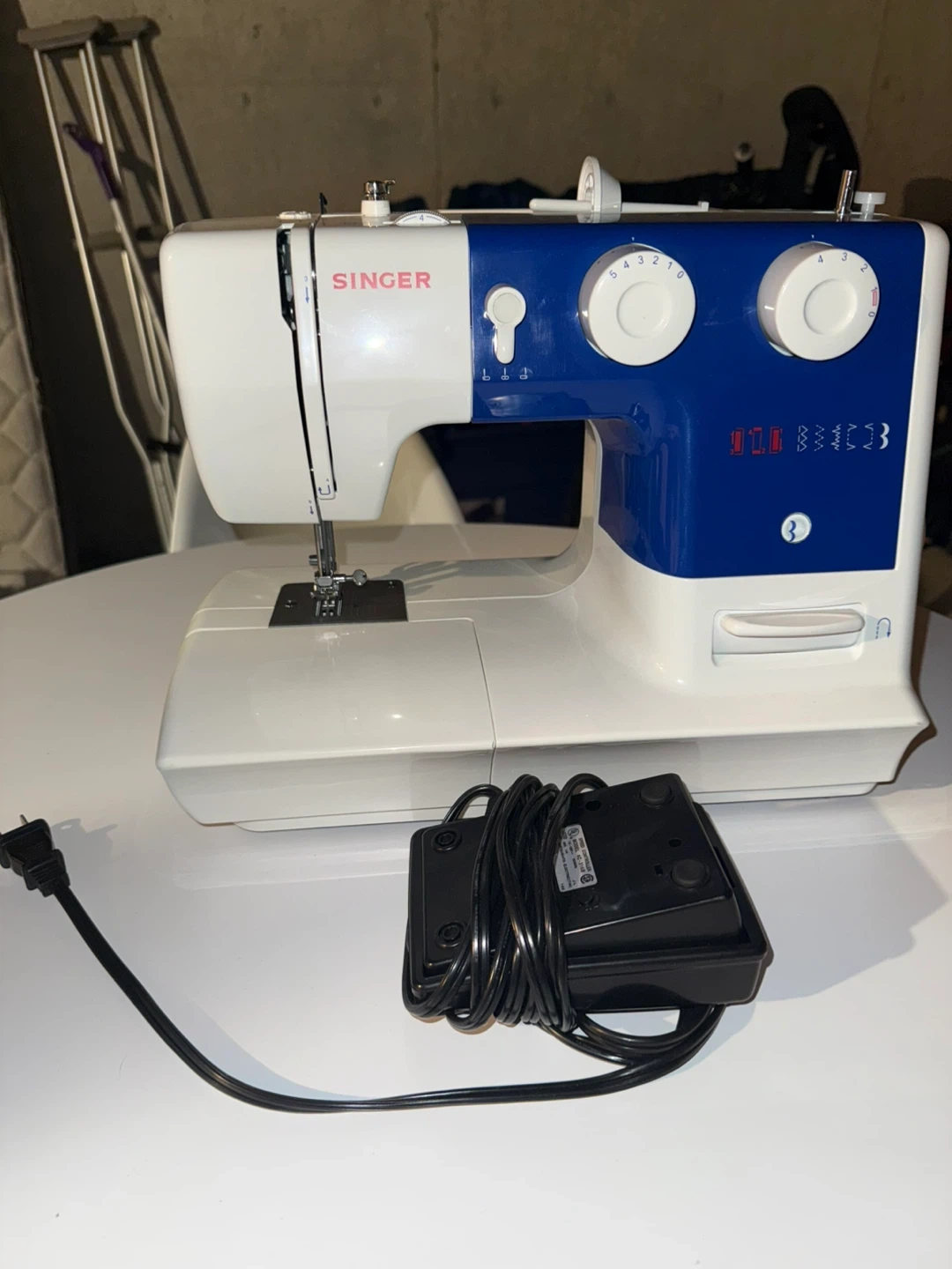 Selling a Singer sewing machine in good condition! It's white and blue, and comes with the foot pedal. Perfect for anyone looking to get into sewing or needs a reliable machine for their projects Do not use and have not for years.